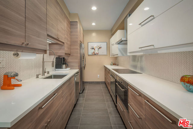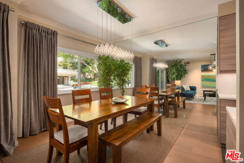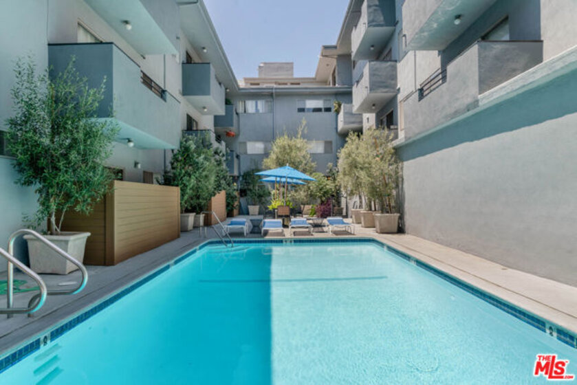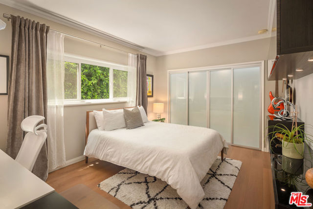 Welcome to this beautifully renovated front-facing, single level 2-bedroom, 2-bath luxury condominium, offering the ultimate in sophisticated urban living. Spanning 1,169 square feet, this sophisticated home has been stylishly updated with superior finishes and a sleek contemporary, yet timeless design. The open-concept living and dining areas feature wide-plank hardwood flooring, refined crown molding, foliated sight lines and abundant natural light. The tastefully designed, modern kitchen features stone countertops, stainless steel appliances, and ample cabinetry ideal for entertaining and everyday living. The generously sized bedrooms include custom closets, built-ins and updated bathrooms with designer fixtures and finishes. A Juliet balcony, in-unit laundry and smart technology add to the comfort and convenience of this extraordinary turn-key home. It is an immaculate and pristine residence in an impeccably managed building. Additionally, there is plentiful public parking at the end of the street. Artfully renovated in 2019, 1250 North Kings stands out as a premier, professionally landscaped property on one of the best blocks in West Hollywood. Ideally located within easy reach of world-renowned restaurants, retail and entertainment, this is urban living at its finest! Amenities for this well-managed building include a Butterfly Intercom System, sparkling pool, sauna, fully equipped state-of-the-art gym, secured parking and additional storage, all at a low HOA of just $530 including EQ insurance. Furnishings available for separate purchase.