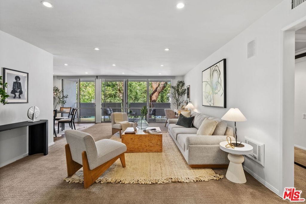Size matters! This spacious one-bedroom home boasting over 1,000 square feet has a remodeled kitchen and tons of closet space. The washer/dryer is conveniently located inside one of the bedroom closets, a coveted feature for a condo in West Hollywood. The impressive kitchen has been updated with stone counters, subway tile backsplash, stainless steel appliances, gooseneck faucet and European cabinets. Floor-to-ceiling windows and sliding doors open from the living room onto the big balcony with tree-top views. This extra-large floor plan features two bathrooms, including a powder room off the living room and an en-suite primary bathroom with a large bathtub. The bedroom has room for a king-size bed and two large closets. This unit has an assigned parking space and additional storage in the securely gated garage. The Kings Plaza HOA lovingly maintains this stunning mid-century complex featuring a sparkling pool, a spa, and beautifully landscaped grounds. The HOA fee includes water, sewer, cable TV and EQ insurance. Located on a quiet tree-lined street, this condo is just moments away from shops, dining and nightlife along Santa Monica Blvd, Melrose Ave and La Cienega Blvd.