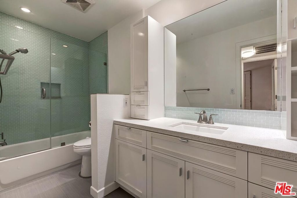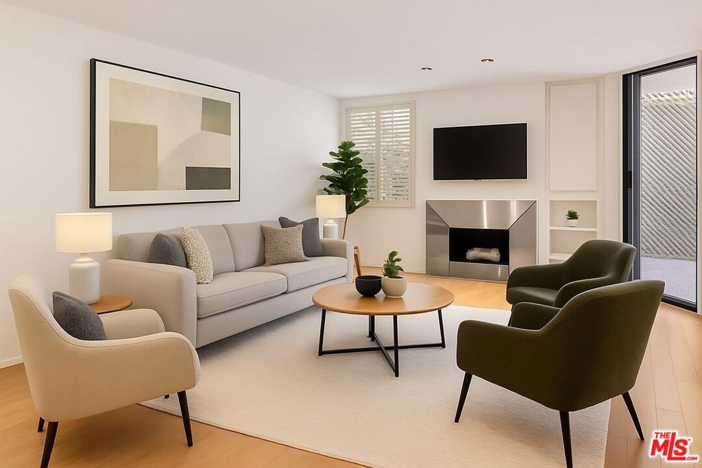 This move-in ready 1 bed, 1 bath condo in prime West Hollywood area offers modern upgrades and an unbeatable location just one block north of Melrose Avenue. The beautifully updated kitchen features stainless steel appliances, quartz countertops, a glass tile backsplash, and a dishwasher, while the remodeled spa-like bathroom complements the home's sleek style. Floor-to-ceiling sliding glass doors in both the living room and bedroom open to a huge private patio, creating a seamless indoor/outdoor flow that makes the unit feel especially spacious. Additional highlights include blonde bamboo floors throughout, central A/C and heat, walk-in closet with built-ins, a new building access system with touchscreen and phone notifications, and one deeded secure garage parking spot. The Kings Villas complex provides resort-style amenities including two spas, a billiards room, fitness center, package-secure mail area, guest parking, EV/Tesla charging stations, laundry on each floor, and a rooftop deck with panoramic city and hill views. Low HOA fees cover water, trash, gas, and earthquake insurance, and the home is ideally situated minutes from the Beverly Center, Cedars-Sinai, and some of LA's best shopping, dining, and nightlife.