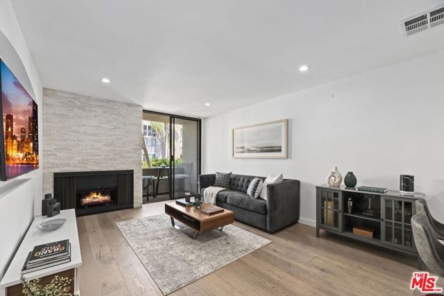 Located in the most desirable pocket of West Hollywood, this beautifully renovated 1-bedroom, 1-bathroom condo seamlessly combines modern luxury with everyday comfort.Flooded with natural light, the open living space features a cozy fireplace, and private balcony. The sleek, contemporary kitchen includes a large breakfast bar and porcelain countertops with elegant waterfall edges, all flowing effortlessly into the main living area. Additional highlights include wide-plank hardwood floors, a spacious walk-in closet, side-by-side in-unit washer and dryer, and central heating and air. The unit also comes with two assigned parking spaces and ample guest parking. Set in a secure, amenity-rich building, residents enjoy access to a rooftop lounge with panoramic city skyline views, a hot tub, sauna, billiards room, and a fully equipped gym. With a coveted street-facing location and steps from Melrose Place, this turnkey home offers the best of West Hollywood living. Seller is a Licensed real estate agent.