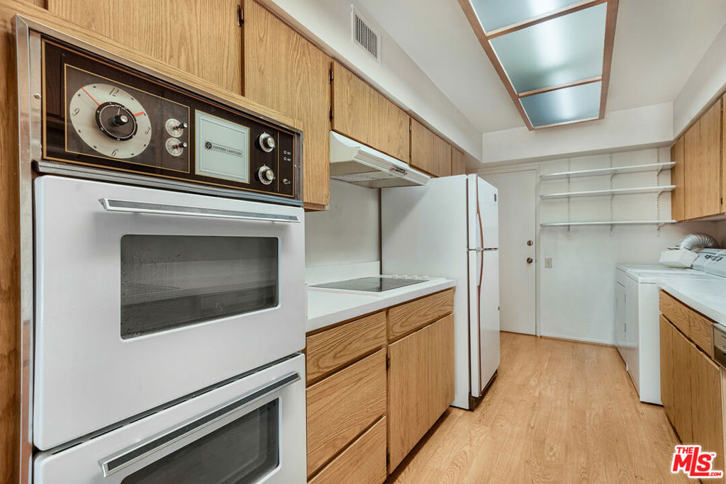 Fabulous fixer opportunity on one of West Hollywood's finest blocks! Spacious 2BR/2BA condo with nearly 1,400 square feet of living space features full-size, side-by-side washer & dryer inside the kitchen. Located on the southeast corner of the building, this front-facing unit gets flooded with morning sunshine and has a big balcony to enjoy tree top views. The primary bedroom suite has a vast walk-in closet measuring 8x9 feet and its own en-suite bathroom. The unit's two side-by-side parking spaces in the underground garage are steps away from the building's two elevators and there are additional guest parking spaces. The complex has a recently renovated lobby, a heated pool, and low HOA fees of just $495/month. Located on one of WeHo's best blocks, the building is across the street from a grocery store and close to restaurants, cafes and shopping on Santa Monica Blvd.