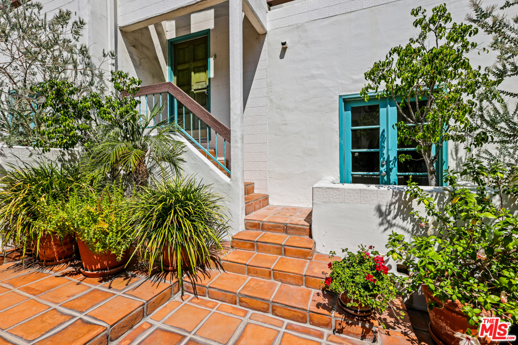 Lovely townhouse style condominium in an intimate 12-unit Spanish-style courtyard complex. This light filled multi-story home includes private balconies, hard wood floors, vaulted ceilings and a fireplace. The top floor loft leads to a large sun deck providing a peaceful retreat from the city. Two en suite bedrooms, powder room, inside laundry and private/direct garage access with parking for two cars. All just minutes from the great shopping and dining West Hollywood offers. Trust sale, sold AS-IS.