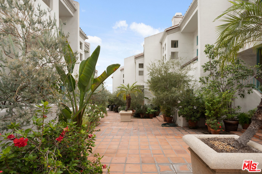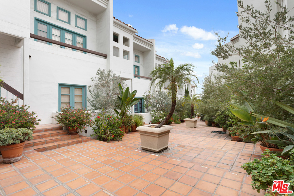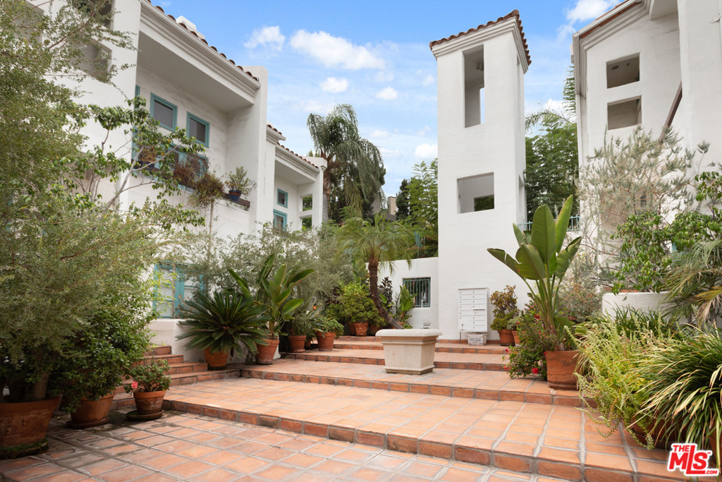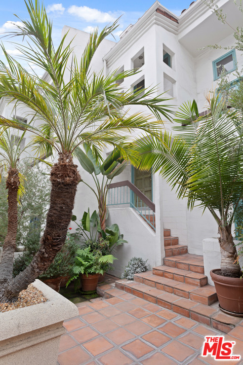 Tranquil Mediterranean courtyard townhome conveniently positioned within the heartbeat of West Hollywood. Move in or make this your own by utilizing every angle of the desirable multi-level townhome with private direct entry 2 car garage to create its maximum potential, allowing any or all aspects to be reimagined by your taste & custom style throughout. Open and bright vaulted ceiling living room with exposed stairway, featured fireplace, and French doors leading to large balcony. Dining area with step-out balcony, large pantry, with an easy transition from the cozy kitchen. Top-level loft area perfect for home office/flex space leading to spacious and private rooftop sun deck with wet bar. Downstairs provides 2 bedrooms with step-out balconies and en-suite bathrooms. Lower-level laundry area with direct entry garage makes this feel like a home.
