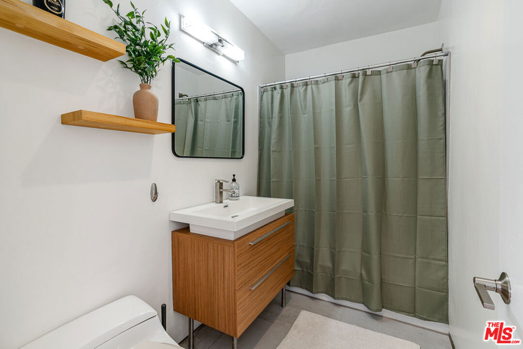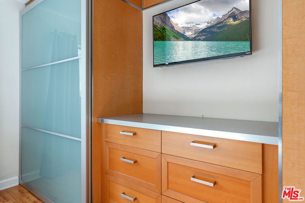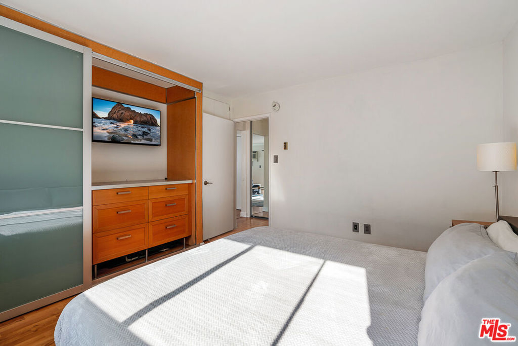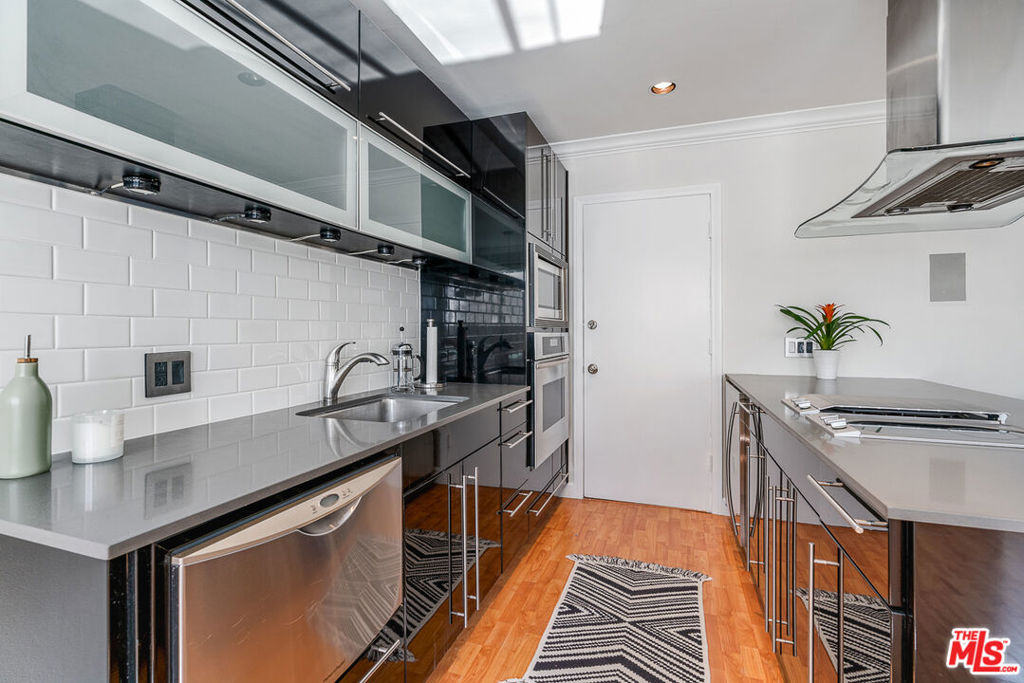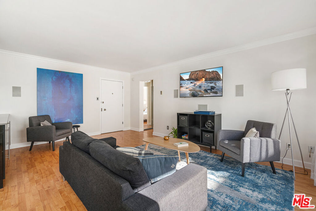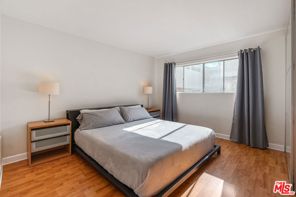 Thoughtfully modernized + sharp looking corner condo with lots of natural light that calms the senses with good energy. This spacious unit is open concept with large living and dining areas that flow together nicely on top of golden engineered wood floors that make a warm first impression. Modern kitchen with large island offers sleek corian countertops, gaggenau cooktop portfolio and new subway tile mosaic that awaits its next chef. Large light-filled bedroom with built in drawers and closet to organize yourself clean. Bathroom has a newer vanity with shelves next to a hallway closet. Freshly painted warm white interior with new light fixtures along with a large terra cotta painted balcony paneled with privacy to enjoy your morning coffee. Interior facing condo is on 2nd level that offers some real peace and quiet. Washer + Dryer can be installed with HOA approval. Low monthly HOA of $430. Building offers a pool, rooftop deck with very cool LA views, a gym, mailroom and gated parking with 1 space. Pets allowed, long term rentals only - HOA covers most utilities. This place will make you a smile, come take a look!