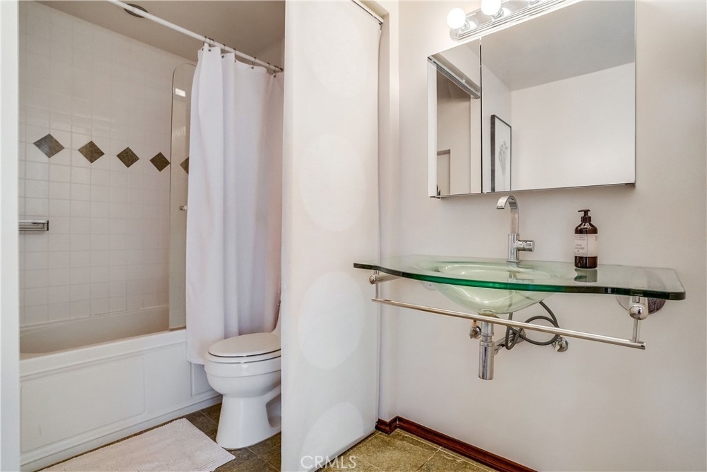 Inviting hideaway located in the center of prime West Hollywood with close proximity to the Sunset Strip, clubs, restaurants, nightlife, and shopping. The Larrabee Spa complex consists of four two-story buildings with 16 residences each and offers a common swimming pool, tanning deck, spa, clubhouse, barbecue, gated entry, and parking in a gated community garage. Unit 218 is located in the center-north building and has easy access to the garage parking below. The condominium has an open floor plan with laminate hardwood flooring in the living room and bedroom. Space-saving, built-in refrigerator and freezer, crown molding and new paint throughout, plus new ceiling fans, new air conditioner unit, a variety of cosmetic renovations, and a beautiful bathroom with marble floors, making it the perfect cozy West Hollywood retreat. Condo is also available for lease $2800 furnished or Unfurnished