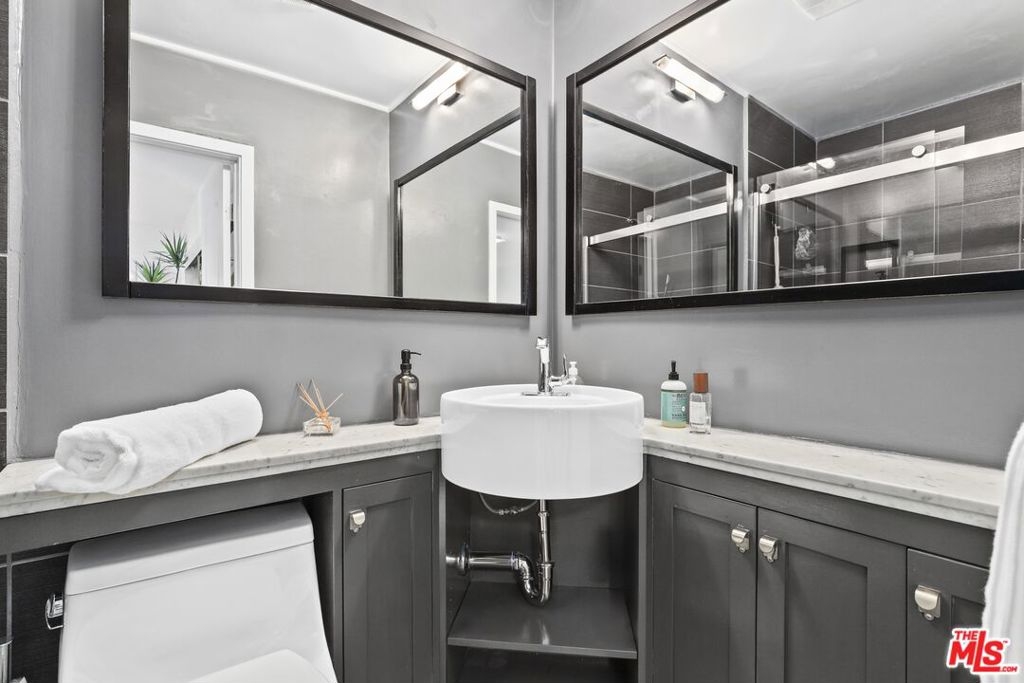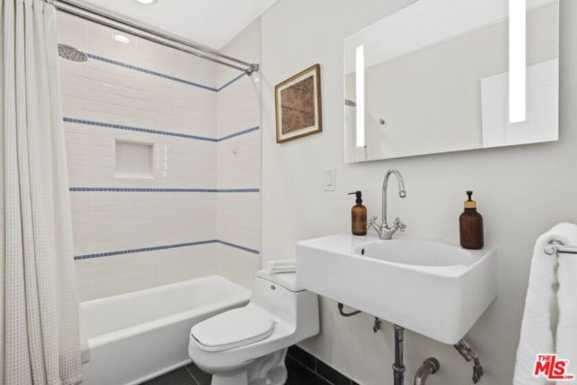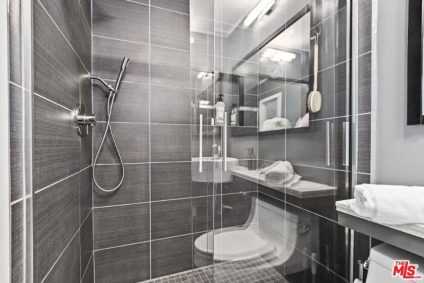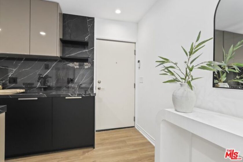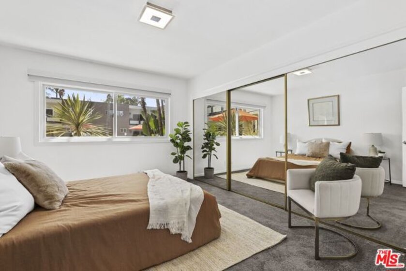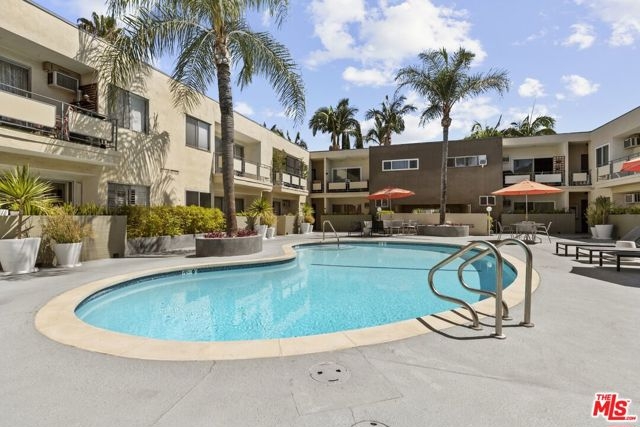 Welcome home to your Palm Springs like resort in the heart of West Hollywood. This beautifully renovated two-bedroom, two-bath residence features a reimagined Poggenpohl kitchen with new cabinets, appliances, countertop, backsplash, and a spacious kitchen island, complemented by a new Miele dishwasher and Bosch appliances. Brand new interior doors, new flooring, a new front door, upgraded recessed lighting throughout, and remote operated custom made blinds elevate the home's modern appeal. The residence is further enhanced with a new Renewal by Andersen sliding door, and new windows and screens, filling the space with natural light. Positioned in the quiet rear of the complex, the living area and patio overlook the sparkling pool, while the primary bedroom offers a serene retreat tucked away for ultimate privacy. Just one block to Trader Joe's and the neighborhood pharmacy, and two blocks to Bristol Farms and Whole Foods, you'll enjoy unmatched convenience. Local favorites such as Laurel Hardware, Tu Madre, and Connie & Ted's are all just moments away, along with the vibrant restaurants and nightlife that define West Hollywood living. Set within a classic mid-century building, residents are welcomed by a striking terrazzo-tiled entry and can indulge in the resort-style pool and lounge area, complete with swaying palm trees, chaise lounges, and umbrellas, the perfect blend of style and relaxation.