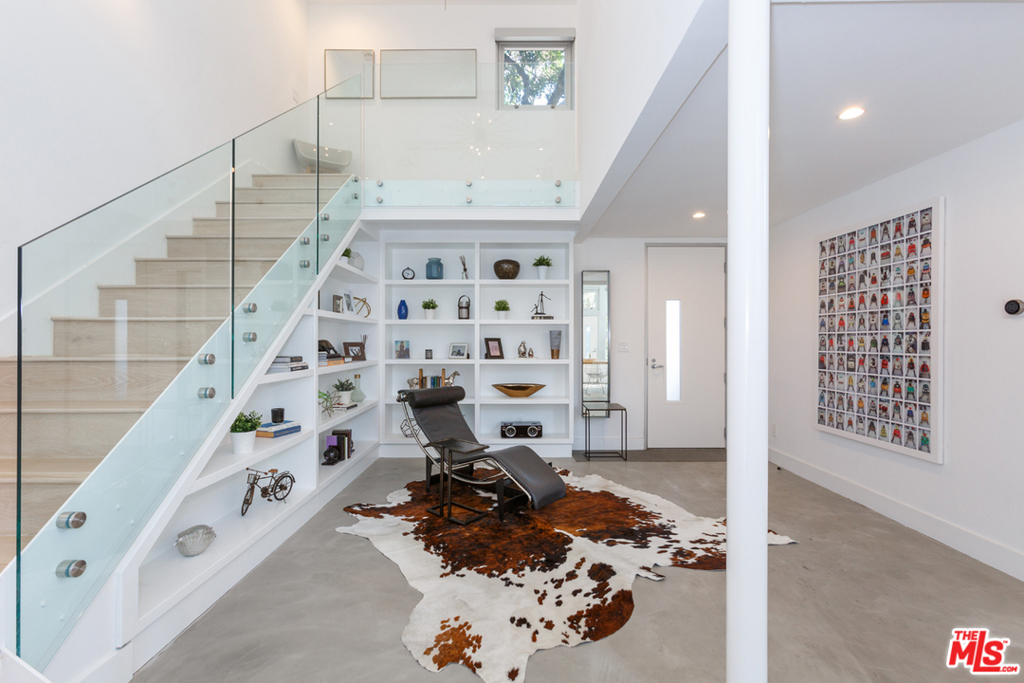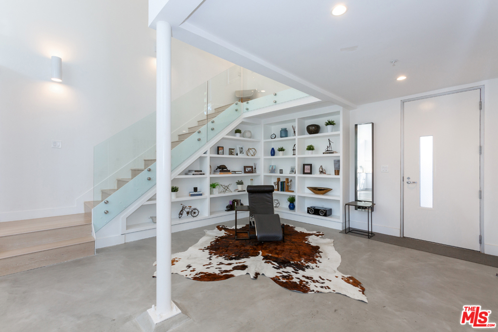 STUNNING Architectural end corner unit remodeled with high-end designer finishes and materials. This very light bright double corner unit faces east, south and west, has approx 18-20 ft ceilings and 2 main entrance doors for wonderful cross breezes. Walk-in and enjoy polished concrete floors, a Huge wall of glass windows and gorgeous newly refinished hardwood floors upstairs. Well appointed remodeled cooks kitchen with adjacent built-in breakfast bar and seating for 6 and spacious living room are all perfect for parties. First floor spare bedroom with en-suite fully remodeled bathroom and stacked laundry in the closet. Walk up the GORGEOUS refinished hardwood white oak floor's steps to the spacious & peaceful Primary bedroom and bathroom with stellar lights & street views. Large wonderful relaxing outdoor patio!! Close proximity to the best of West Hollywood. A must See.