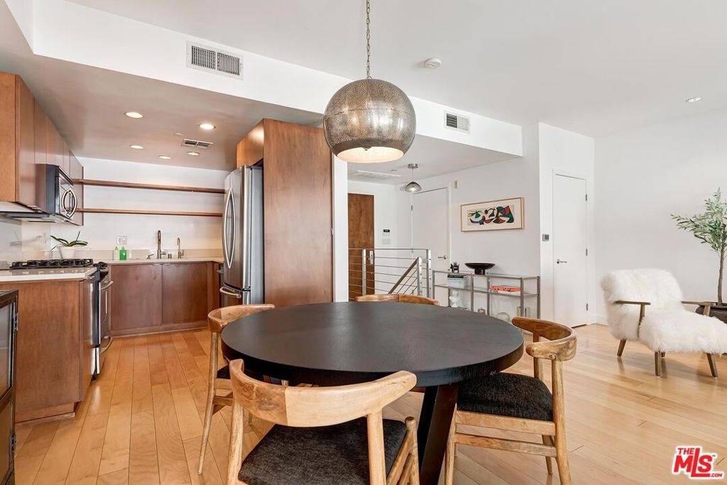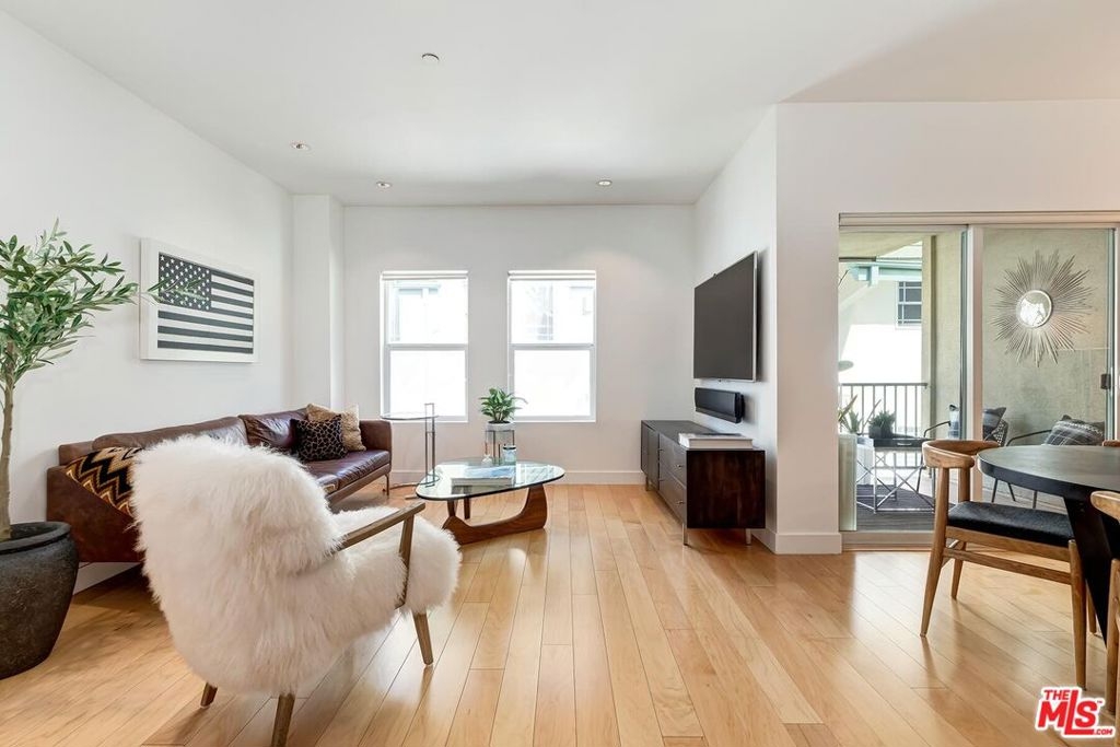 Step into luxury living with this exquisite 1-bedroom, 1 1/2 bathroom sanctuary nestled in the vibrant heart of West Hollywood. This luminous top-floor unit spans two levels, offering a seamless blend of style and comfort. The first level boasts a spacious living area with natural light, dining room, and powder room. A chef's dream kitchen featuring Caesarstone countertops, custom wood cabinets, and high-end stainless steel. Descend to the lower level where serenity awaits in the primary suite, complete with a generous walk-in closet and an indulgent bathroom featuring double sinks. An additional versatile space awaits, ideal for a home office or personal gym. Enjoy the ultimate outdoor experience with expansive patio spaces on both levels, providing the perfect setting for al fresco dining or simply soaking in the California sunshine. Top floor corner unit with only one shared wall. This residence also boasts modern conveniences such as central HVAC, an in-unit washer/dryer combo, and a reverse osmosis water filter. Revel in the finer details including beautiful hardwood floors, recessed lighting, and double-paned windows and sliding doors. With two tandem parking spots and low HOA fees, this is West Hollywood living at its finest. Close to Sunset Blvd's shopping, dining, and entertainment.