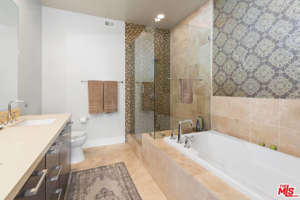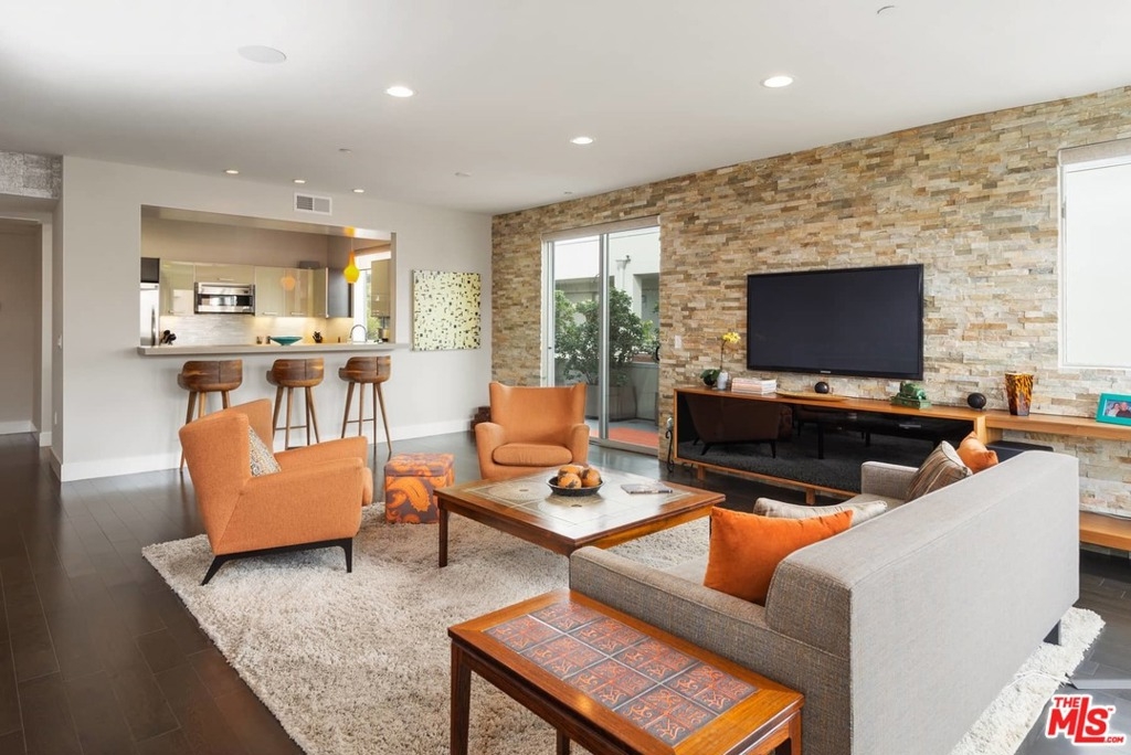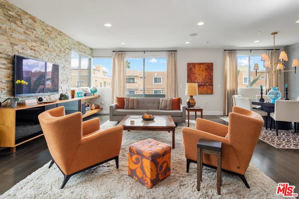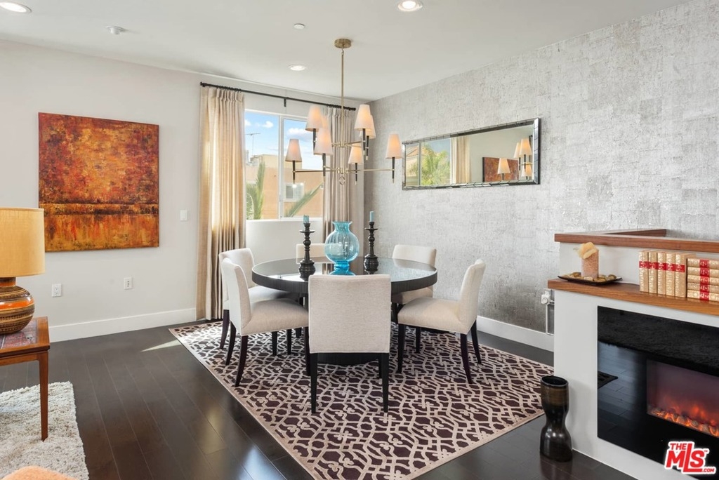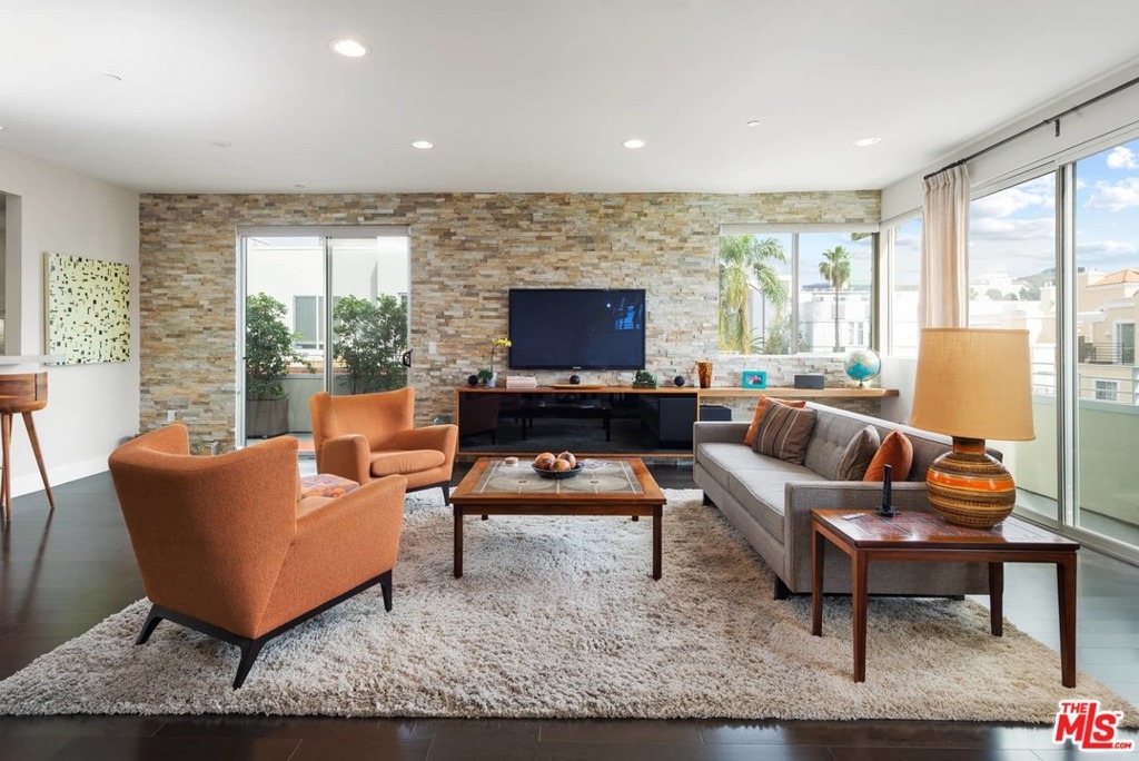 Heres your chance to be only the second owner of a prime, designer-done penthouse located in the heart of the NEW Hollywood. This east-facing unit has three bedrooms and two and a half baths on two levels encompassing more than 1900 square feet. On the upper level, the cooks kitchen is outfitted with Viking appliances, Caesarstone countertops, and custom Italian-made cabinetry. Living room features built-in custom entertainment center, with stack stone wall and custom gas fireplace for cozy nights, as well as two balconies and Designer wall-paper on staircase wall. Downstairs three generously sized bedrooms offer large closets and ample storage, and a front-loading, side-by-side washer-dryer. Principal bedroom has a luxurious en suite bath. Third bedroom has its own keyed entrance, making it an ideal home office. Unit comes with two parking spots and there is additional visitor parking in the garage. There are high security keys to the unit that can only be digitally created. There is only one adjoining wall with the unit next door.
