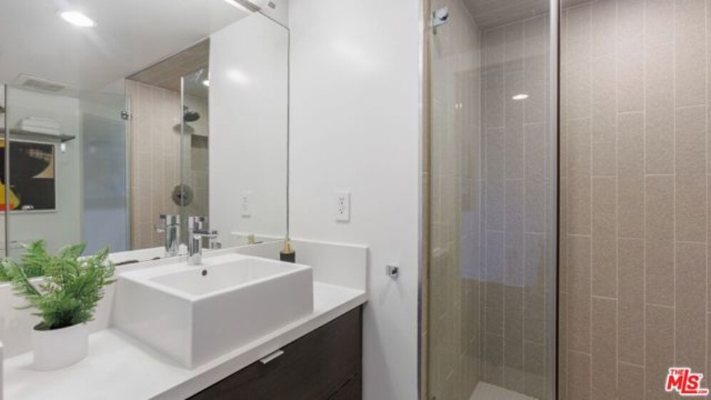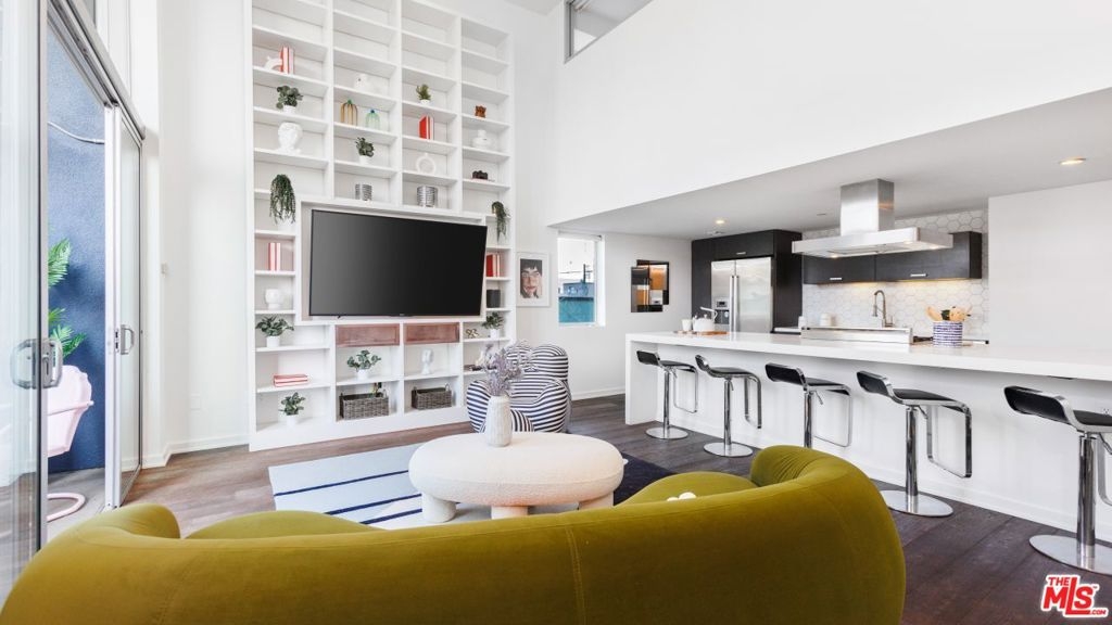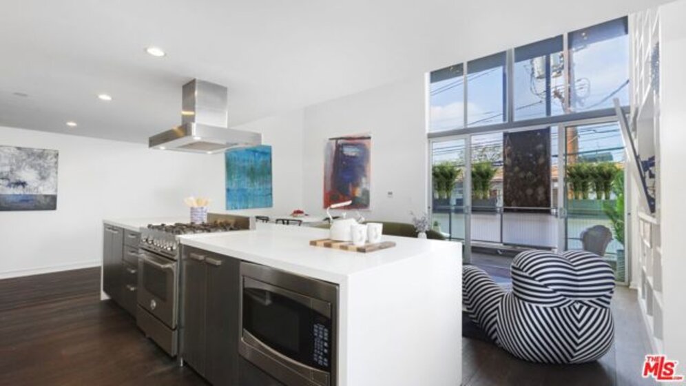 A West Hollywood gem bursting with personality and style, 751 N. Fairfax Avenue #1 offers a unique piece of history in the storied Cherokee Studios. Under the direction of a leading green developer, this once world-renowned music studio made way for the Green LEED Platinum Work/Live complex, collecting an award from the American Institute of Architects along the way. Enjoy two bedrooms, two bathrooms, and two levels of beautifully curated living space designed by Pugh + Scarpa. Beyond the gated entry, enter the turn-key, modern yet cozy, bright condo. Hardwood floors throughout lead to an expansive open living space with soaring 16-foot ceilings, tall built-in shelving, and floor-to-ceiling windows. Connected is the sleek chef's kitchen with a large Caesarstone island with bar-style seating, a Bertazzoni oven, and stainless steel appliances. Glass doors open from the cozy dining space to a private balcony complete with greenery. The light-filled primary suite features high ceilings and a generous bathroom with newly upgraded finishes. Upstairs offers a total retreat, complete with an office/sitting area, laundry area, and en-suite guest bedroom. With two parking spots and a rooftop deck, savor a stylish life of convenience in a prime location moments away from coffee shops, restaurants, and shopping.
