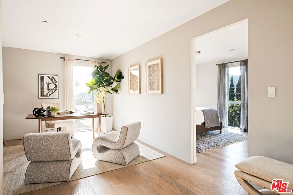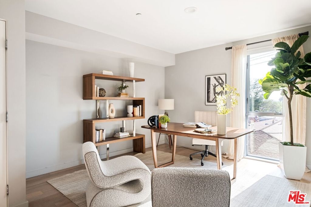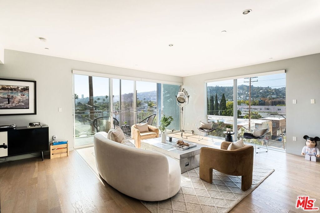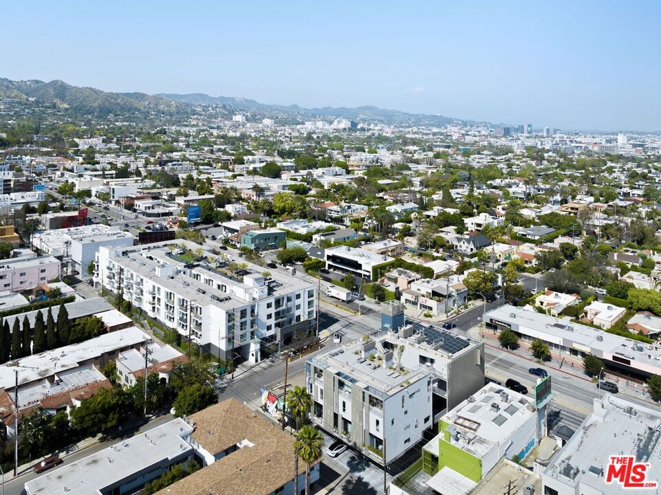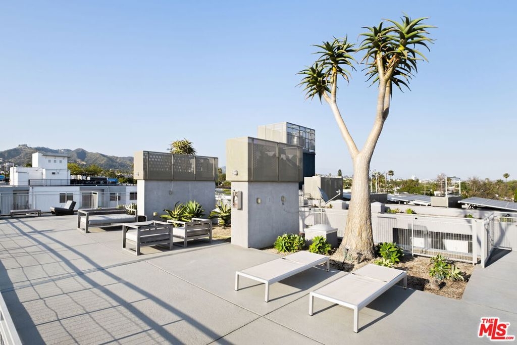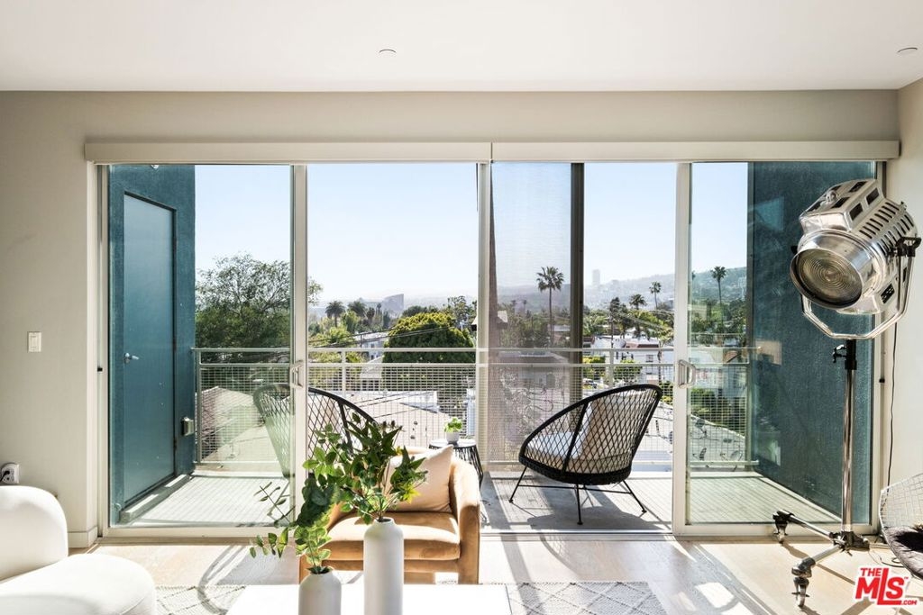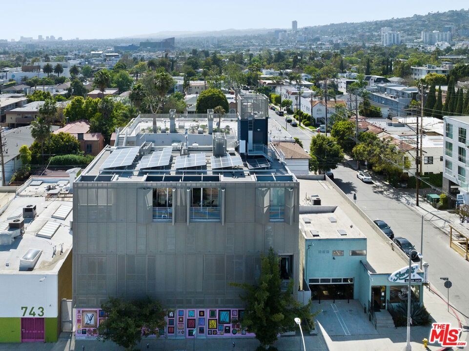 Welcome to this luxurious penthouse-style townhome with sensational views. Located at "The Lofts at Cherokee Studios," this stunning corner unit boasts the distinction of being the first truly "green" development with Platinum LEED certification; meticulously crafted by award-winning architects Pugh + Scarpa. Enjoy breathtaking views of the Hollywood Hills and Century City from every angle of this thoughtfully designed space. Step inside to discover an open floor plan adorned with designer finishes, offering the perfect canvas for your personal style. This versatile unit also offers the unique opportunity for conversion into a recording studio, catering to the needs of artists and creatives alike. Embrace the eco-friendly lifestyle with an energy-efficient building featuring solar panels, a rooftop deck, and drought-tolerant landscaping. This gorgeous home boasts a chef's kitchen equipped with high-end stainless steel appliances, custom cabinetry, and Caesarstone countertops. Quality wide plank hardwood floors grace the entirety of the property, while a private balcony with a large storage room provides the perfect retreat. The primary suite is complete with a cool spa bathroom with freestanding tub and frameless glass shower and walk in closet. There is an amazing office and additional bedroom with a large bathroom. Additional features include the rooftop deck offering 360-degree views, two individual subterranean parking spaces with an electric car charger, in unit laundry, and convenient access to Melrose, Whole Foods, and a plethora of dining and entertainment options. Don't miss your chance to own the best loft at The Lofts at Cherokee Studios an oasis of luxury and sustainability in the heart of Hollywood.