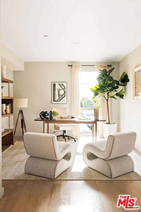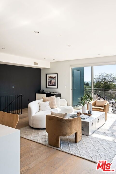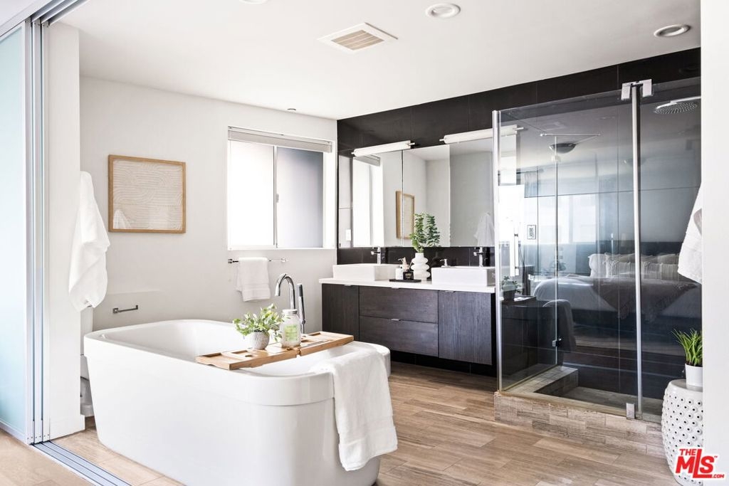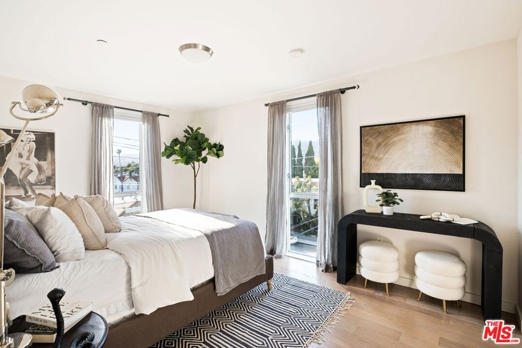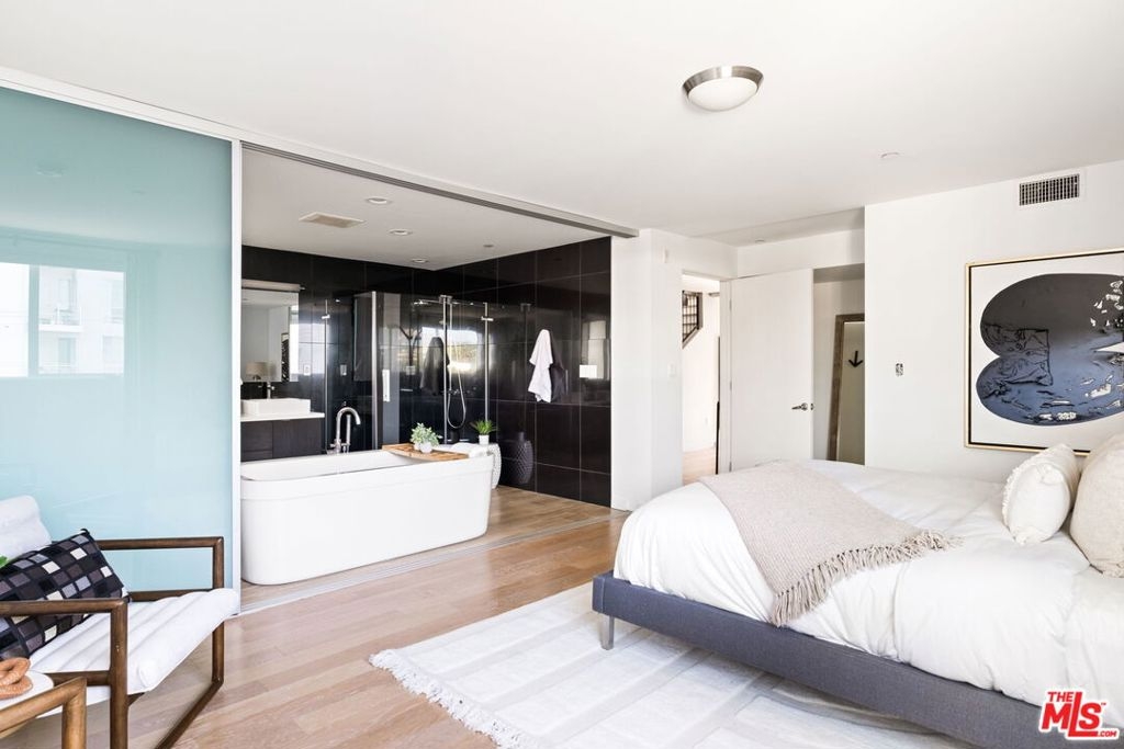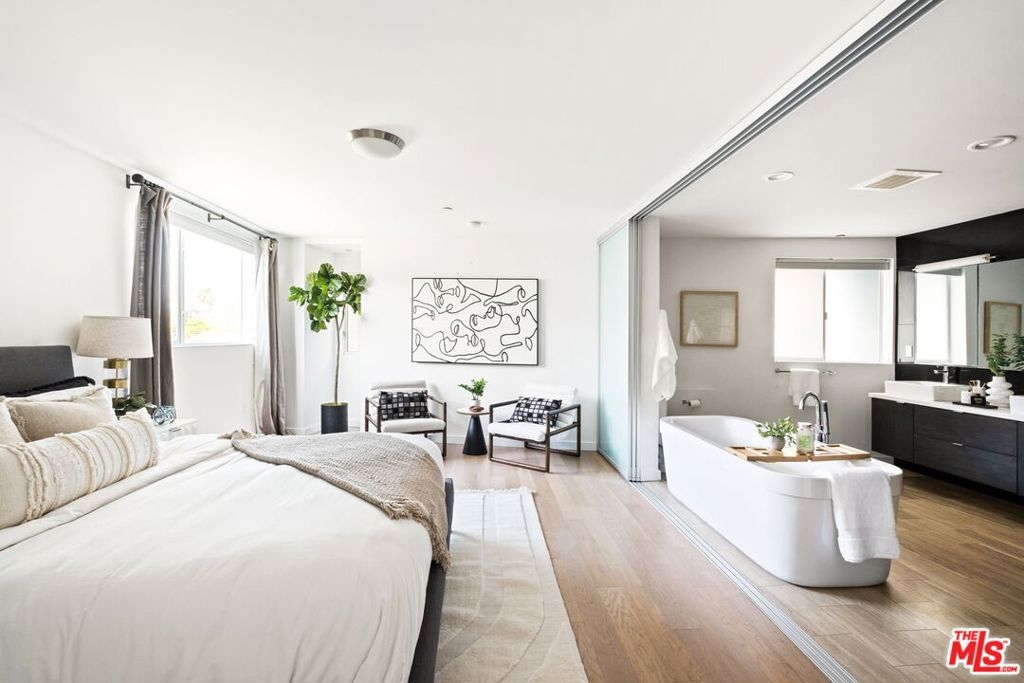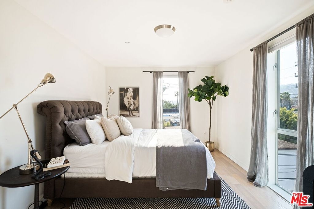 Welcome to this luxurious penthouse-style townhome with sensational views. Located at "The Lofts at Cherokee Studios," this stunning corner unit boasts the distinction of being the first truly "green" development with Platinum LEED certification; meticulously crafted by award-winning architects Pugh + Scarpa. Enjoy breathtaking views of the Hollywood Hills and Century City from every angle of this thoughtfully designed space. Step inside to discover an open floor plan adorned with designer finishes, offering the perfect canvas for your personal style. This versatile unit also offers the unique opportunity for conversion into a recording studio, catering to the needs of artists and creatives alike. Embrace the eco-friendly lifestyle with an energy-efficient building featuring solar panels, a rooftop deck, and drought-tolerant landscaping. This gorgeous home boasts a chef's kitchen equipped with high-end stainless steel appliances, custom cabinetry, and Caesarstone countertops. Quality wide plank hardwood floors grace the entirety of the property, while a private balcony with a large storage room provides the perfect retreat. The primary suite is complete with a cool spa bathroom with freestanding tub and frameless glass shower and walk in closet. There is an amazing office and additional bedroom with a large bathroom. Additional features include the rooftop deck offering 360-degree views, two individual subterranean parking spaces with an electric car charger, in unit laundry, and convenient access to Melrose, Whole Foods, and a plethora of dining and entertainment options. Don't miss your chance to own the best loft at The Lofts at Cherokee Studios an oasis of luxury and sustainability in the heart of Hollywood.