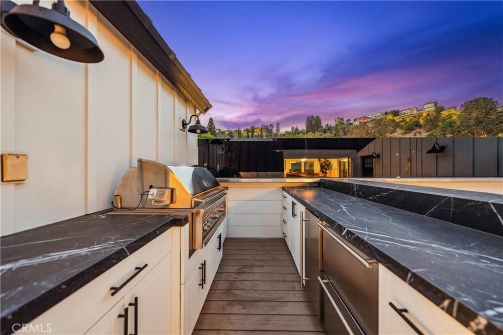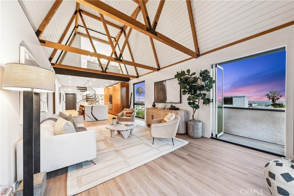 A One-of-a-Kind Reimagined Penthouse Just Off the Iconic Sunset Strip! This ultra-luxury corner penthouse has been completely remodeled—no detail overlooked, no expense spared. Featuring direct private elevator access, you’ll step into a fully customized open-concept home that exudes sophistication and quality. Highlights include a gourmet kitchen with custom cabinetry, imported London clay farmhouse sink, stone countertops, Dacor appliances (fridge, freezer, induction cooktop), and a Miele dishwasher. The entire unit is pre-wired for smart entertainment, and outfitted with soundproofing throughout, including a custom soundproof front door at the elevator entrance. The master suite features a custom walk-in closet, spa-like en-suite bath, and a stunning Napoleon fireplace. All closets are high-end custom builds from The Container Store’s top line. Beautiful floors with special wood laminate finish span the home. The upstairs loft/office space leads to a private rooftop terrace with panoramic city views. The outdoor kitchen is an entertainer’s dream, With retractable glass doors from a luxury design firm in Laguna Beach. Every element of this penthouse speaks to quality, privacy, and elevated living. An exceptional property for those who demand the best.