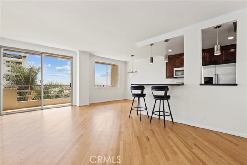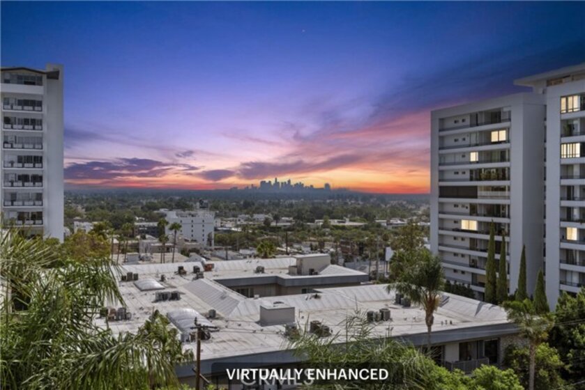 Proudly introducing this stunning 1-bedroom, 1-bathroom penthouse condo offering 731 sq ft of upgraded living space and panoramic skyline views, including the iconic Downtown Los Angeles cityscape. Located on the TOP FLOOR of the coveted Park Wellington, this beautifully updated unit combines luxury, comfort, and location in one incredible package. Step inside to find hardwood floors, a remodeled open-concept kitchen with granite countertops, stainless steel appliances, and a breakfast bar perfect for casual dining or entertaining. The spacious living area flows seamlessly to a large private balcony, ideal for soaking in the city lights and skyline sunsets. The bedroom features ample natural light, city views, and a generous walk-in closet. The remodeled bathroom boasts travertine tile, an elegant vanity, and a roomy walk-in shower—all freshly painted and move-in ready. Park Wellington is one of West Hollywood's premier full-service, resort-style communities, offering: 24-hour doorman/concierge and security, Heated year-round pool with lounge areas, Pergola-covered spa and sauna, North/south tennis court, Fitness center, Lush grounds and a professionally managed HOA. Just moments away from the best of West Hollywood and the Sunset Strip—including world-class shopping, dining, and nightlife!!