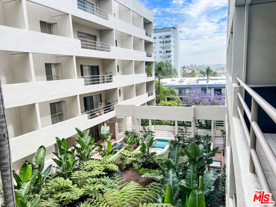 Serene sanctuary located in the heart of West Hollywood just steps away from the world famous Sunset Strip shopping, dining, and entertainment! Retreat to this luxurious private, secure condo with 24 hour concierge, gorgeous natural light, and lush courtyard & peekaboo city view. Fully upgraded, featuring two bathrooms and IN UNIT Bosch side by side washer & dryer so you don't have to share (very few units have this feature). Grand double door entry, crystal chandeliers, energy efficient LED lighting, marble & quartz countertops, 30ft private balcony, and a full walk-in closet with plenty of storage. Amenities include pool, spa, private cabanas, state-of-the-art fitness center, tennis court, dog park, mature landscaping, conference areas, plenty of garaged guest parking, and even an app that tracks your package deliveries! Meticulously maintained by HOA which also includes some utilities. A beautiful harmony of luxury and convenience, this Park Wellington oasis is the perfect place to call home!