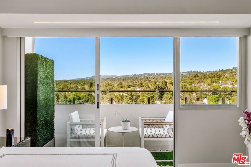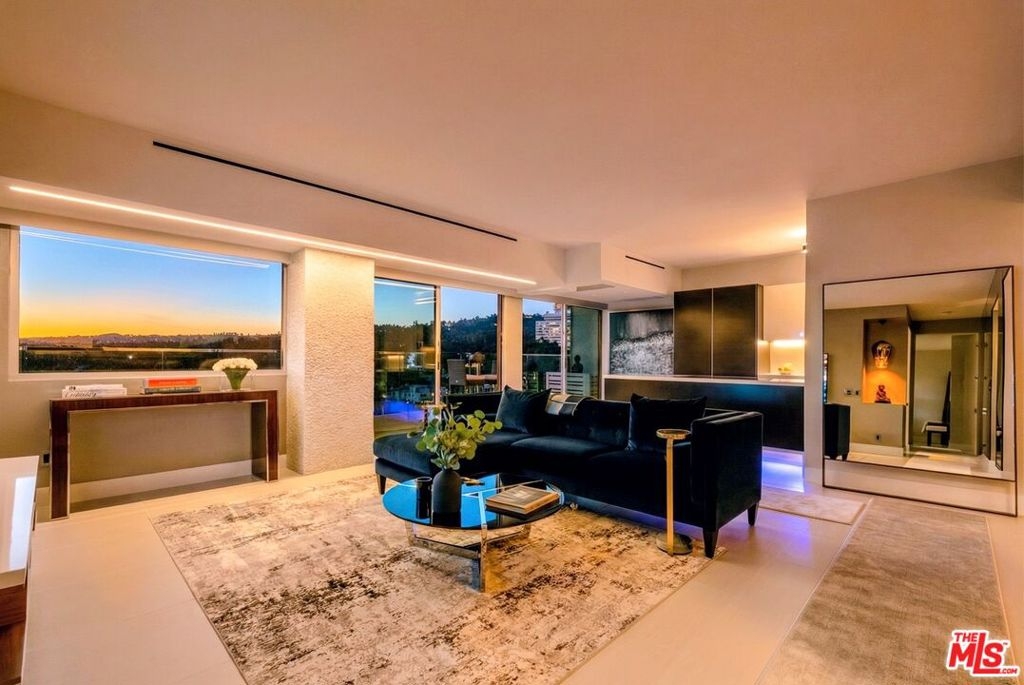 Positioned on the 12th floor of iconic 838 Doheny, this two-bedroom, two-bath residence offers one of the building's most sought-after floor plans with unobstructed west-facing views over Beverly Hills. Wrapped in glass, the residence was reimagined with custom finishes throughout, including a German Alno kitchen, Calacatta Borghini de Oro marble baths, bespoke Kneedler Fauchere wallcoverings, tall custom doors with curated hardware, Lutron linear lighting, smoked glass architectural elements, new appliances, and an integrated smart home system. Fleetwood sliding glass doors open to an extended terrace with panoramic city and mountain vistas framed by endless Sunsets. *Can be sold fully furnished.* The building has completed a $14M structure modernization and offers 24-hour concierge and valet, on-site management, two pools, and a newly renovated rooftop fitness center.