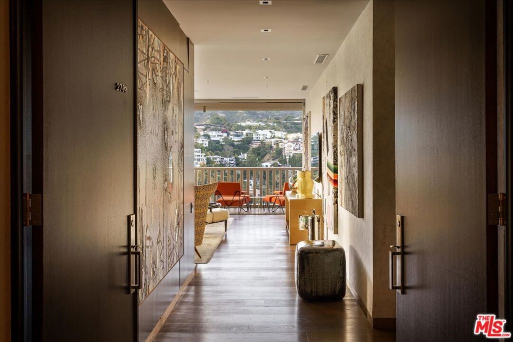 Escape to this stunning corner unit, offering breathtaking, unobstructed views from the Hollywood Hills to the Ocean. Located on the 27th floor of the iconic Sierra Towers, this residence stands out for its exceptional layout and the calming, serene feeling achieved by the vistas of the surrounding greenery. This rare gem had previously been remodeled, boasting an open floor plan where Fleetwood sliding glass doors open from the living room and both bedrooms to a generous outdoor area, perfect for lounging or simply enjoying the extraordinary views. The kitchen features hidden appliances and wood cabinetry. It also includes a washer and dryer, plus a separate staff hallway for discreet access during gatherings, ensuring flawless hosting. A powder room and wine room with a wood-framed glass door are conveniently located off the entry. A long hallway leads you past a spacious en-suite guest bedroom onto the primary suite, which is exceptionally large and designed to enjoy the tranquillity of the views. The bathroom features dual vanities and wet room with separate tub and shower areas. A water closet and sizable walk-in complete the suite. Building amenities include 24-hour valet service, a pool and spa, a gym and additional fitness room, locker rooms with saunas, and a conference room.