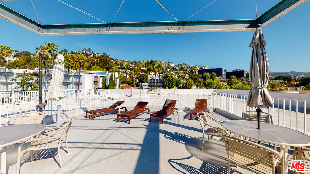 West Hollywood. Rare opportunity to own in the iconic Frank P. Schneider, AIA's 'Sunset Penthouse'. Classic mid century building is located in prime WeHo, just South of Sunset Blvd. With a 91 Walk Score, you're moments from the best restaurants, shopping and nightlife. The unit w/ extra 1/2 bath is flooded with natural light and an open floorpan maximizes the space of the unit. Stackable washer and dryer in unit. A balcony can be accessed through the living room or bedroom, perfect for al fresco dining. Large primary bedroom has two closets and en-suite bathroom which features a stall shower and a separate tub. The building has a fabulous roof top deck with lounge areas and stunning views of the Sunset Strip and West Hollywood. Secured building and secured garage with 1 assigned parking space.