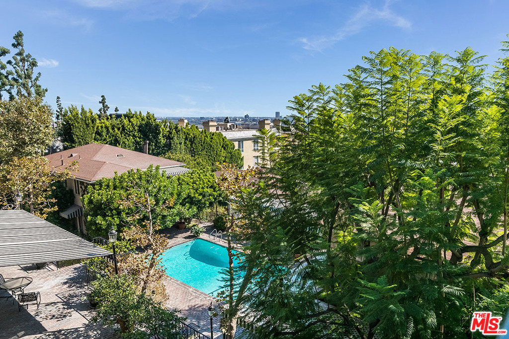 Completely modernized, 3 bed & 3 bath Penthouse in a lovely, Golden Age Era property sitting above the Sunset Strip with pool and sweeping views from Downtown to the beach and beyond. Only a 2-minutes to the upscale restaurants, cafes, and shops of the famous Sunset Plaza, this stunning, light-drenched 1480+ sq.ft. penthouse has new systems and appliances throughout and two private/gated side by side parking spaces. Set back more than 150 feet on lower Sunset Plaza Drive, this quiet unit provides peace, tranquility, and privacy in a lush setting. Notable features include 4 wifi-enabled flat-screen TVs, in-ceiling Sonos speaker system throughout, new central AC system w/ Sensi thermostat, beautifully remodeled baths with marble countertops, in-unit washer/dryer, brand new flooring, and more! Whether a primary residence or elegant pied de terre, this immaculate penthouse in an extremely desirable location provides true latter-day golden age living for the discerning owner.