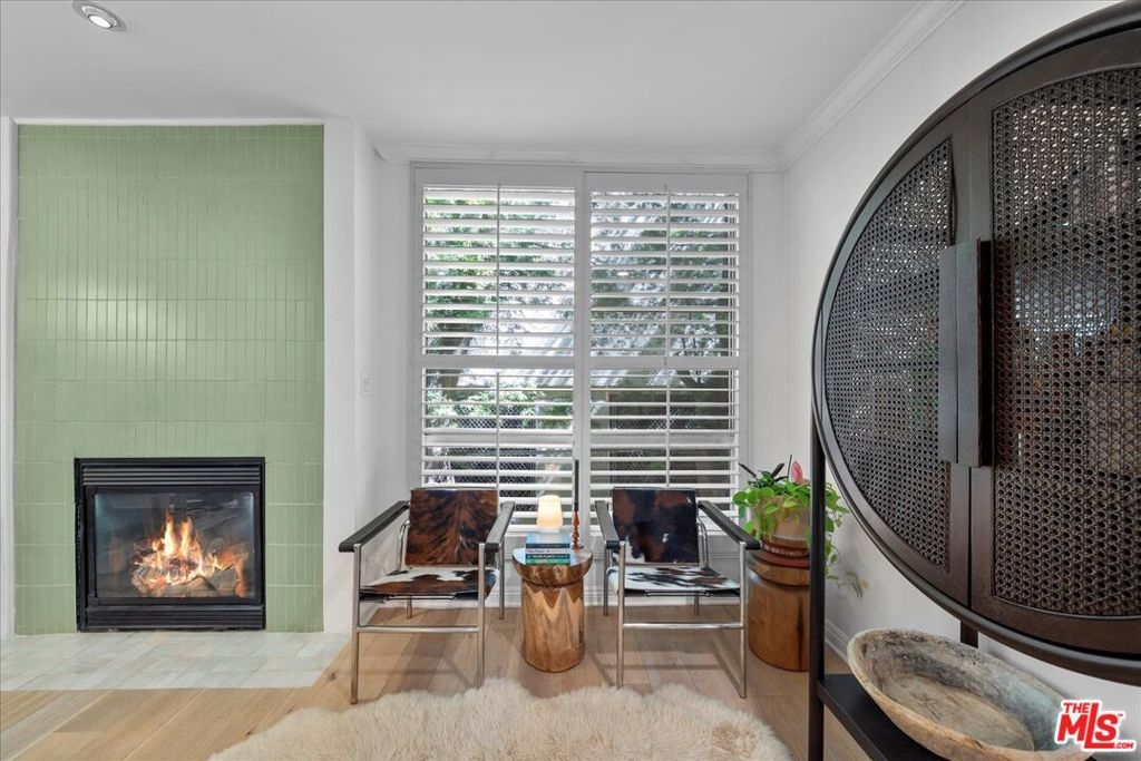 Huge price reduction and incredible deal! Experience elevated West Hollywood living in this impeccably remodeled residence on sought-after Kings Road. This sophisticated one-bedroom condo features hand-scraped hardwood floors, crisp white walls, plantation shutters, and a light-filled open layout. The chef's kitchen is equipped with high-end appliances, white subway tile, and striking black countertops, seamlessly connecting to a stylish dining area. The spacious living room is anchored by a newly tiled gas fireplace, creating a warm, designer ambiance. The freshly updated bathroom showcases luxe finishes, while the tranquil bedroom offers a spacious walk-in closet and abundant storage. Owner is currently installing washer and dryer in unit! Located in a secure, pet-friendly building with a sundeck and sparkling pool, just moments from West Hollywood's premier dining, shopping, and nightlife. HOA includes earthquake insurance, gas, and basic cable - this is turnkey Westside luxury at its finest.