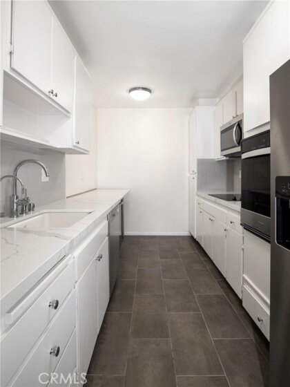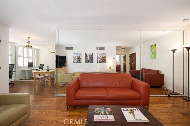 Proud to present this beautifully updated 1 bedroom, 1.5 bath West Hollywood condo offering 966 sq ft of comfortable living in one of the area’s most desirable tree-lined streets. Classic hardwood floors flow throughout, leading you into a bright and spacious living room with sliding glass doors that open to a private, enclosed patio overlooking the sparkling pool—perfect for morning coffee or evening relaxation. The dining area includes a versatile extension that can serve as an office, den, or creative flex space. The modern galley kitchen features quartz countertops, stainless steel appliances, sleek cabinetry, and extended counter space ideal for cooking and entertaining. A convenient half bathroom for guests is a rare perk, while the spacious bedroom also offers direct patio access, two closets—including a generous walk-in—and a recently remodeled ensuite bathroom boasting quartz counters, contemporary tilework, and a glass-enclosed shower. Additional highlights include central heat and air with a newer HVAC system, a Smart Ecobee thermostat, and the option to install in-unit ventless laundry with HOA approval. HOA dues include water, trash, earthquake insurance, high-speed internet, and premium cable. All this in a prime location moments from Trader Joe’s, Gelson’s, Whole Foods, and the endless dining, shopping, and entertainment options along Melrose Ave and Santa Monica Blvd. A fantastic opportunity to enjoy stylish living in the heart of West Hollywood.