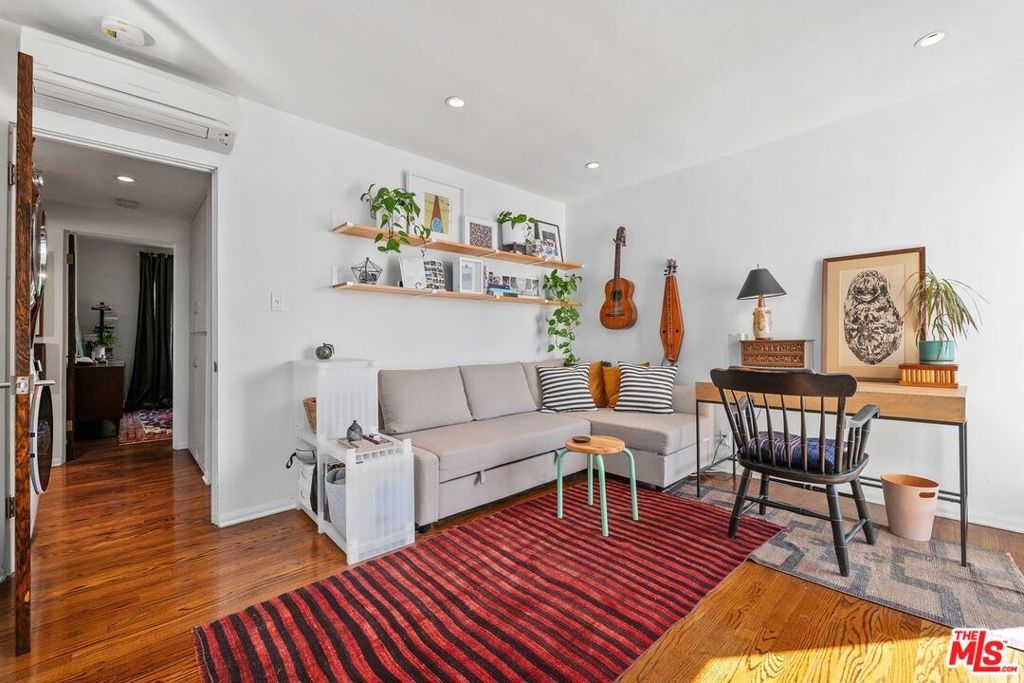 Enjoy relaxing by the pool at this classic mid-century building on one of the best tree lined streets in West Hollywood. This top floor corner unit is located in the rear of the building and has a newer kitchen, gleaming hardwood floors, custom recessed lighting, laundry inside, air conditioning, 2 nicely updated baths and your own spacious balcony for relaxing. Parking for one car plus additional storage is included. This prime location is within the City of West Hollywood courtyard historic district adjacent to everything the Sunset Strip area has to offer. Steps to iconic buildings like Colonial House, Mi Casa, The Andalusia, Chateau Marmont, as well as shopping, movies and dining.
