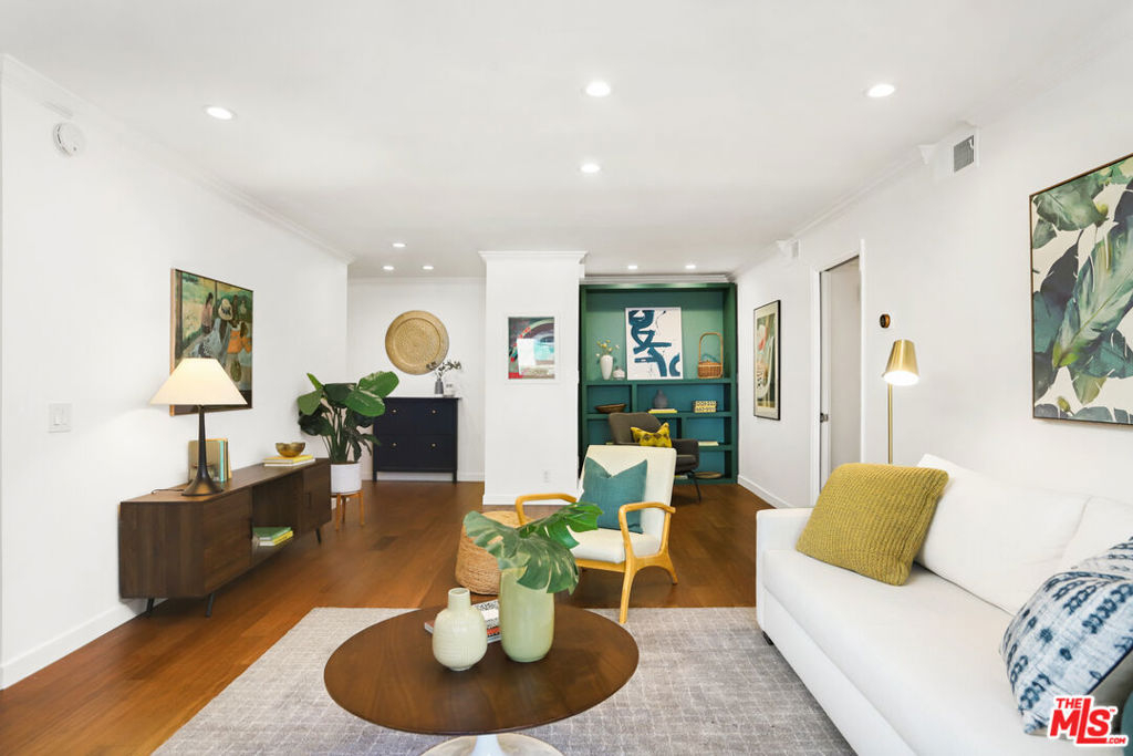 The Bristol creates modern living with incredible convenience to shopping, restaurants, and sidewalk cafes centered in West Hollywood. Spacious 2 bedrooms, 2 baths, front facing corner unit with balcony patio featuring upgrades throughout including updated double paned windows and glass slider. Spacious open floor plan including kitchen, extended dining area, comfortable living room and office/flex nook made easy for your daily lifestyle and entertainment calendar. Hardwood floors, dimmable recessed lights and plantation shutters throughout. The kitchen features espresso cabinets, stainless steel appliances with beverage fridge and includes separate service entry. Guest bathroom with modern vanity, quarter glass soaking tub/shower. The guest bedroom is set for comfort. Primary bedroom features an en-suite bathroom with updated fixtures and ample storage including a walk-in closet. Washer/dryer can be installed inside the unit, currently community laundry available. Building amenities include earthquake insurance, secured sophisticated lobby entry, 2 car side by side parking, courtyard sundeck, pool and private extra storage.