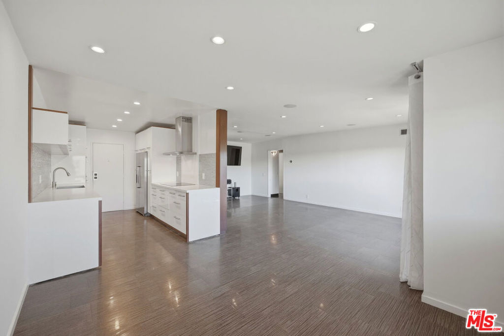 Welcome to modern living at The Bristol, ideally located in the heart of West Hollywood just north of Santa Monica Boulevard and east of La Cienega. This top-floor residence offers approximately 1,379 square feet of thoughtfully designed living space with sweeping east-facing views and abundant natural light throughout. The spacious, bright, and airy living room opens to a private balcony, perfect for morning coffee, evening relaxation, or stargazing. An open-concept layout seamlessly connects the living room, dining area, and kitchen creating an inviting space for both everyday living and entertaining. The updated kitchen features stainless steel appliances, quartz countertops, and ample cabinetry, offering both style and functionality. A dedicated dining area is adjacent to the kitchen, enhanced by large windows that fill the space with natural light. Tile flooring in living room, dining area, kitchen and bathrooms, coupled with hardwood flooring in both bedrooms and hallway adds to this unit's clean, modern aesthetic. The spacious primary suite provides an expansive eastern view, a roomy walk-in closet, and an updated en-suite bath with a glass-enclosed shower. Both bathrooms have been tastefully updated with contemporary finishes, including skylights, and a double vanity + glass-enclosed shower / soaking tub in the second bath. The second bedroom is versatile and ideal as a guest room, home office, or nursery, and also faces east with a view. Dining area and bedroom windows have plantation shutters. An additional highlight offers the convenience of an HOA-approved washer / dryer combo in the unit that is located in a laundry room with additional storage. There are two assigned side-by-side parking spaces in the gated garage along with a private storage cabinet. Residents of The Bristol enjoy access to a pool and expansive outdoor common area with tables and seating, perfect for relaxing or entertaining. Monthly HOA dues of $699. includes water, property maintenance and structural earthquake insurance. Ideally situated near some of West Hollywood's most popular destinations, The Bristol is just moments from Sunset Boulevard, Barry's and Equinox gyms, Gelson's, Trader Joe's, Landmark Theatres, Marix Cafe, La Boheme, CVS, Wells Fargo, Bank of America, and soon-to-open Laurel Supply and Erewhon markets, placing the best of city living right at your doorstep.