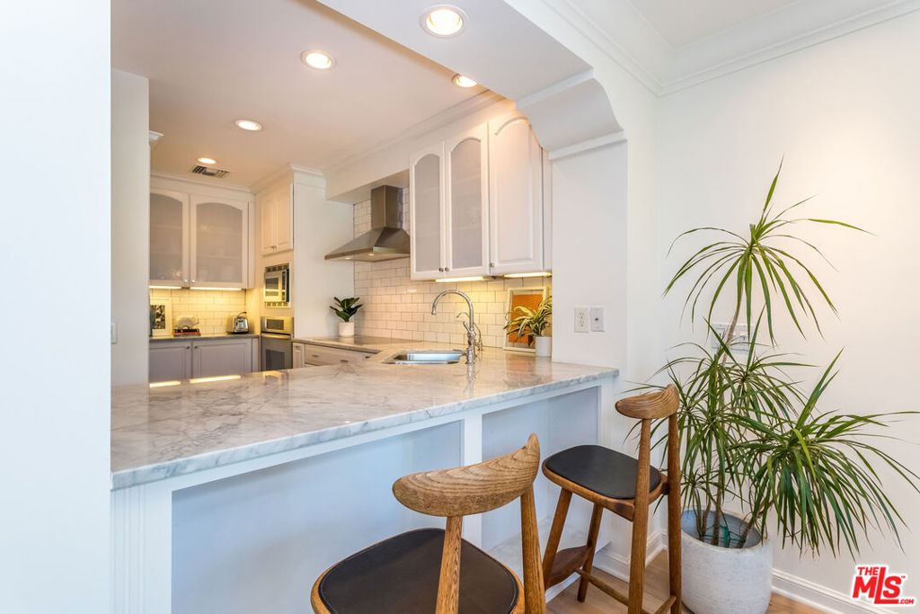 Tastefully Remodeled Top Floor Unit in Prime West Hollywood. This top floor 1 Bed 1 Bath unit at The Bristol is located on the front of the building with eastern exposure, allowing for incredible natural light to fill each room. Tastefully remodeled with high quality finishes, this unit features a spacious open floor plan with new wide plank white oak floors, redone kitchen with stainless steel appliances and breakfast bar, gracious ceiling height throughout, and direct access balcony off living area. Large bedroom with closet and additional built-ins for storage. Newly updated lobby and elevators with controlled access, heated pool, spacious courtyard patio, and gated parking with storage. An incredibly accessible location just blocks from the world class amenities of the Sunset Strip and Santa Monica Blvd. This unit truly checks all the boxes and is the best value of any 1BR currently on the market in West Hollywood.