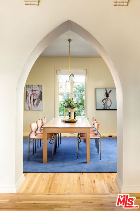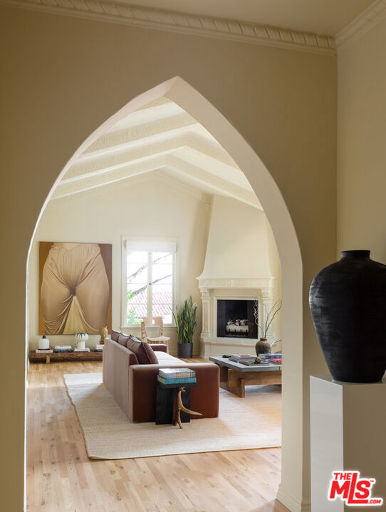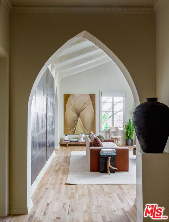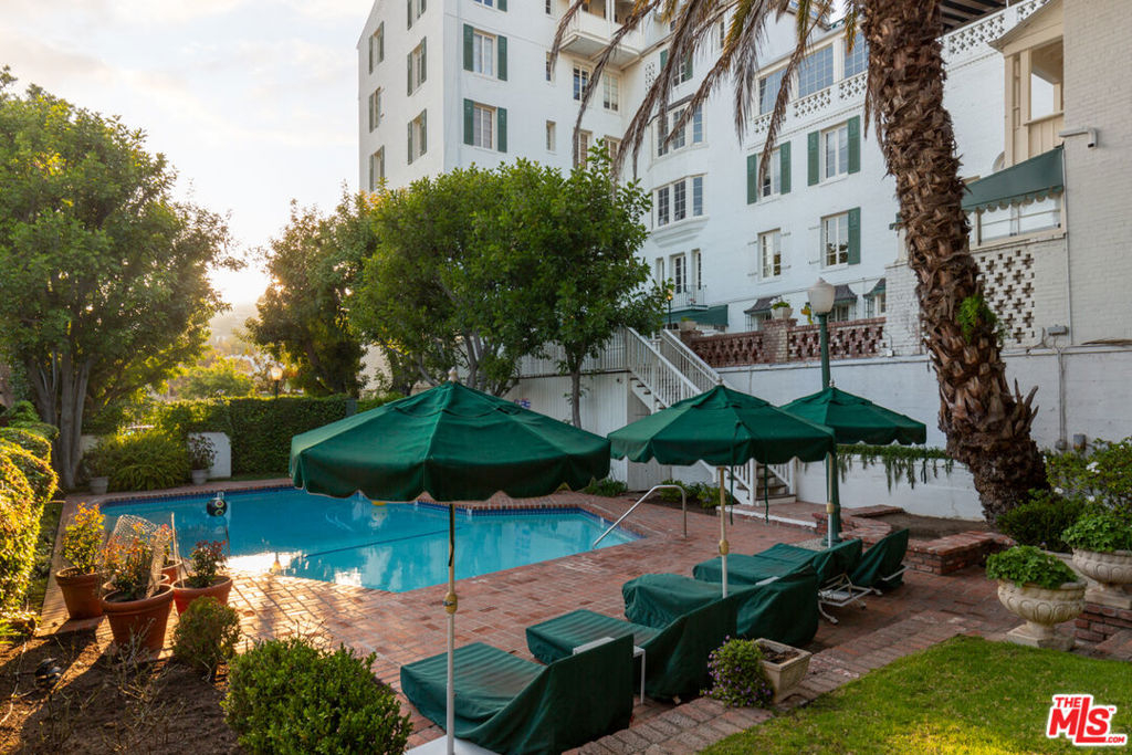 Welcome to 1416 Havenhurst Dr., 2E, a stunning 2-bed, 2-bath condo in the historic Colonial House with a rich Hollywood history. Designed by renowned architect Leland Bryant, this iconic building is a true masterpiece and a testament to the Golden Age of Hollywood. With previous residents that include Hollywood icons like Bette Davis, Cary Grant, and Clark Gable, this building is a piece of Hollywood history.This particular unit is a true gem, with stunning archways and huge vaulted ceilings that are unique to the unit and hand-carved wood moldings that add to the charm and character of the space. The attention to detail is evident throughout the condo, from the grand entryway to the spacious living room with breathtaking views.The condo itself is updated with modern features while still retaining its original character, providing the perfect blend of old-world charm and contemporary living. The kitchen features high end appliances like Gaggenau cooktop and custom cabinetry, making it a chef's dream. The unit's layout maximizes privacy and a sense of tranquility, making it the perfect retreat after a long day in the city. The balcony provides an extension of the living space and a peaceful oasis to relax and unwind.Enjoy resort-style living with a beautiful pool and lush outdoor spaces that evoke a serene oasis, perfect for relaxing and enjoying the Southern California sun. The building boasts on-site security, ensuring the safety and privacy of its residents.In addition, this building is eligible for the Mills Act, a program that rewards homeowners for preserving and maintaining their historic properties with significant property tax savings.Don't miss your chance to own a piece of Hollywood history in this remarkable and secure building, where the allure of Old Hollywood meets modern luxury living.