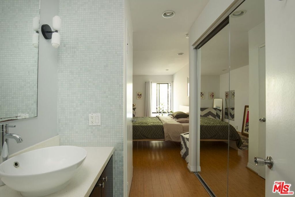 PRICED TO SELL! BRING YOUR OFFERS! The Courtyards is a premier condo complex rich with amenities in prime West Hollywood. The open layout greets you with a bright, sun drenched living room thanks to its western exposure. Step out and relax on your own private balcony at golden hour or cozy up next to a sleek concrete fireplace inside on a chilly day. The kitchen was renovated with a timeless, modern feel accompanied by stainless steel appliances and stylish stone countertops and cabinetry. This spacious unit comes with 2 generously sized bedrooms, complete with large closets, and a true primary en suite with in unit washer/dryer. Central heating and air. The location could not be better. Close to Santa Monica Blvd and Melrose Blvd. The unit overlooks a lush canopy of trees in Kings Road Park and it is close proximity to the dog park, Gelsons, West Hollywood Design District, Melrose Farmers Market, Laurel Hardware, Hugo's, Crossroads Kitchen, Pura Vita, and Tu Madre just to name a few. The HOA covers gas, water, earthquake insurance, on-site management, and maintenance, along with an array of amenities including two secure parking spaces, a heated pool and spa, sauna, a fitness center, club room, and overnight on-call security. Don't miss this opportunity to enjoy exceptional value, and resort-style amenities, in a highly sought-after location!