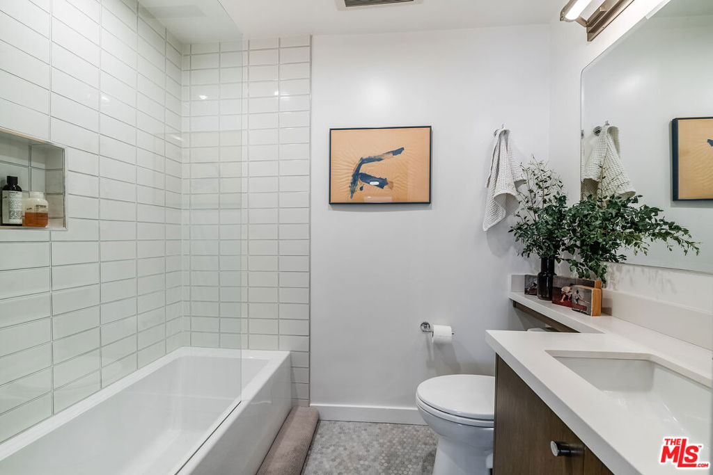Welcome to elevated living in the heart of West Hollywood, one of Los Angeles' most vibrant and sought after neighborhoods, celebrated for its dynamic day to night energy, renowned dining, coffee culture, boutiques, and entertainment.This designer finished two bedroom, two bath residence offers a seamless blend of sophistication and comfort. Clean architectural lines, high end finishes, and thoughtfully curated materials, including Mirage white oak floors in the main living areas and Ann Sacks tile in the bathrooms, create a modern yet inviting aesthetic throughout. The open floor plan flows effortlessly from the dining area and living room to a private balcony overlooking lush, mature trees, an ideal setting for morning coffee or evening relaxation.Both bedrooms are designed as primary suites, offering privacy and flexibility, along with generous storage and abundant natural light. The beautifully appointed kitchen showcases White Macaubas quartzite countertops, satin lacquer cabinetry, and stainless steel appliances, opening seamlessly to the main living space and creating the perfect environment for entertaining. Washer and dryer hookups provide added everyday convenience.Located within the coveted Courtyards community, residents enjoy resort style amenities including beautifully landscaped grounds, a sparkling pool, spa, and fitness center. This rare unit shares no common walls and includes two side by side parking spaces and a private storage locker. HOA dues cover gas, water, basic cable, and the majority of the electricity.More than just a residence, this is a lifestyle that is stylish and perfectly positioned in West Hollywood.