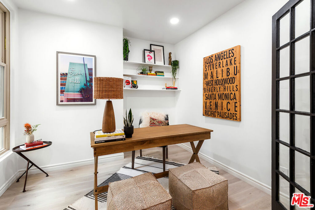 Welcome to 1110 Hacienda Place, an exquisitely remodeled condo in the heart of West Hollywood. Nestled on a tree-lined street just a short distance away from hot spots such as Holloway House, Barney's Beanery, and the Sunset Strip, this gorgeous condo is the home you've been dreaming of. Fall in love with the location, stay in love with the picture-perfect finishes. Contemporary vinyl plank flooring, modern black hardware, and brand-new recessed lighting throughout has fully transformed this abode into a true urban oasis. The trendy galley kitchen features freshly painted cabinets, all-new quartz countertops, and brass fixtures that will make it a dream to cook (or unpack takeout) in! The stylish bathroom is the spa experience you've been waiting for with plenty of storage and counter space along with a separated steam shower so you can unwind before drifting off to sleep in your primary bedroom. The bonus den is the ideal spot to work from home or convert into a bedroom or nursery as the previous owners did. With a darling dining nook and a living room framed by nearly ceiling-tall windows, Hacienda is an indoor-outdoor entertainer's paradise. Two enchanting olive trees provide a gorgeous backdrop for when you kick up your feet on your spacious patio. This residential building features secure garage parking, an indoor pool, and a rooftop clubhouse to reserve for your next event or to simply take in a jaw-dropping sunset over incredible city views. The prime location means you're minutes away from all the adventures that make Los Angeles, Los Angeles including hiking at Runyon Canyon, shopping at the Grove, and epic nightlife. Errands will never be easier as you'll be a short distance to ample grocery stores, pharmacies, gyms, and some of LA's best coffee shops to kickstart your day. *Public record shows unit as a 1 bedroom, however the den meets minimum requirements to be counted as a bedroom and listed as such on marketing materials.*