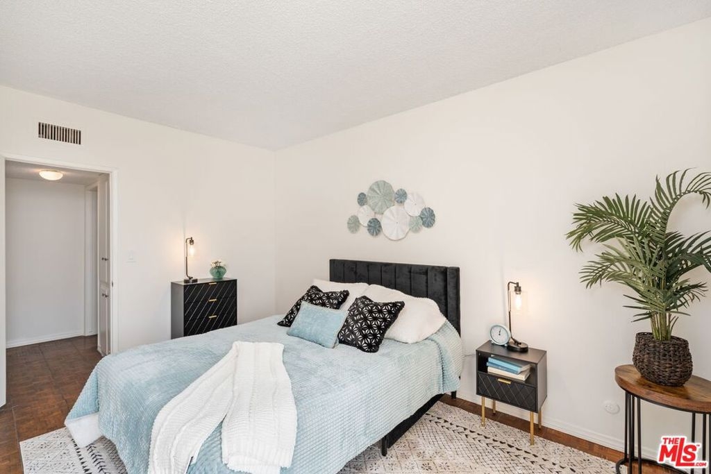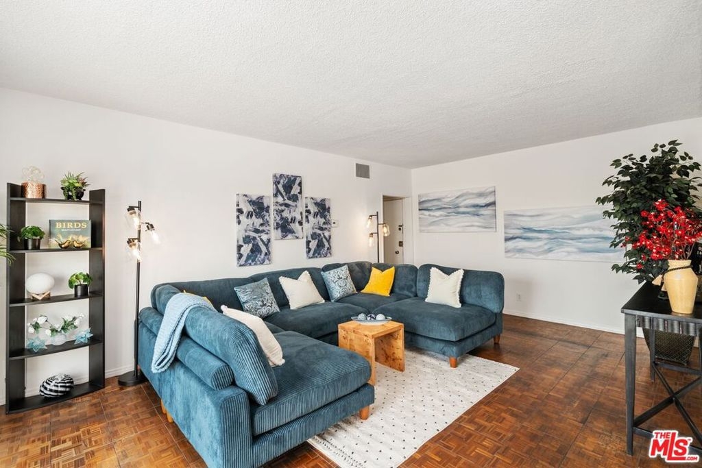 **Incredible opportunity** to customize this spacious, light-filled one-bedroom condo with south-facing views and a large balcony. The condo has higher-than-usual ceilings, parquet wood floors, & central AC/Heat. The bedroom has a wall of wardrobes/closets. The unit has been recently painted & is a perfect blank slate to make it your own. Close to West Hollywood's best dining, shopping, and nightlife. This well-managed building includes amenities such as an indoor pool, extra storage, laundry room, rooftop sun deck, clubhouse, bike storage, and secured parking. The low HOA dues also include earthquake insurance. In-unit laundry permitted with HOA approval