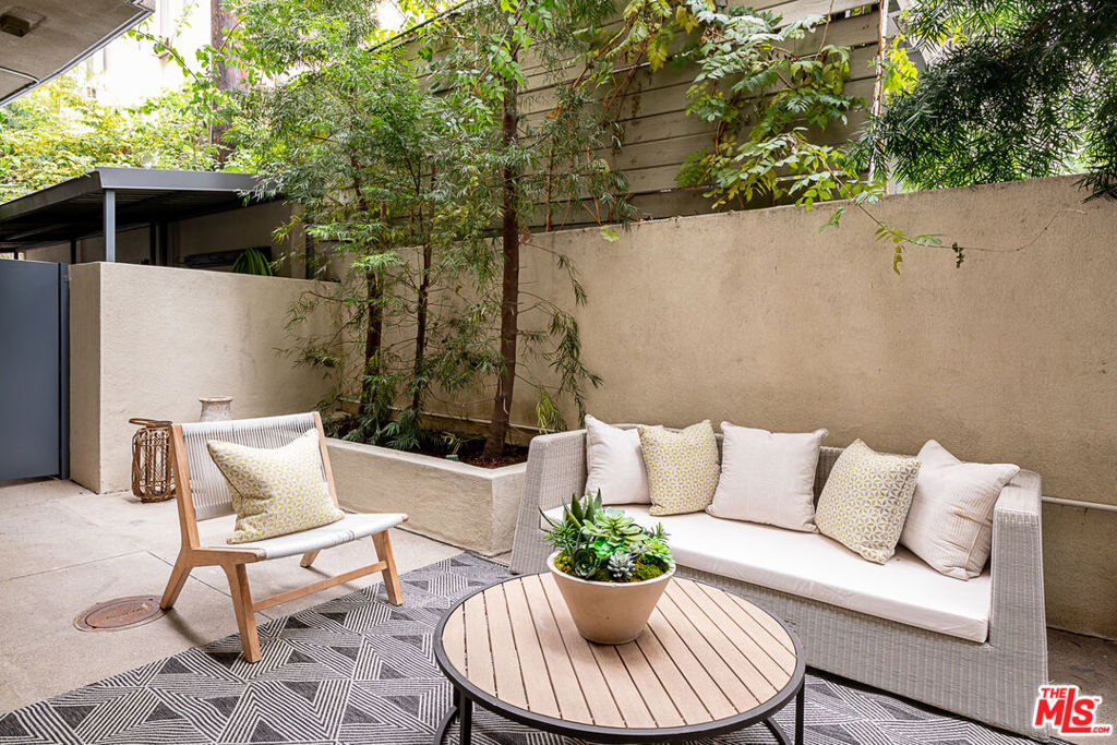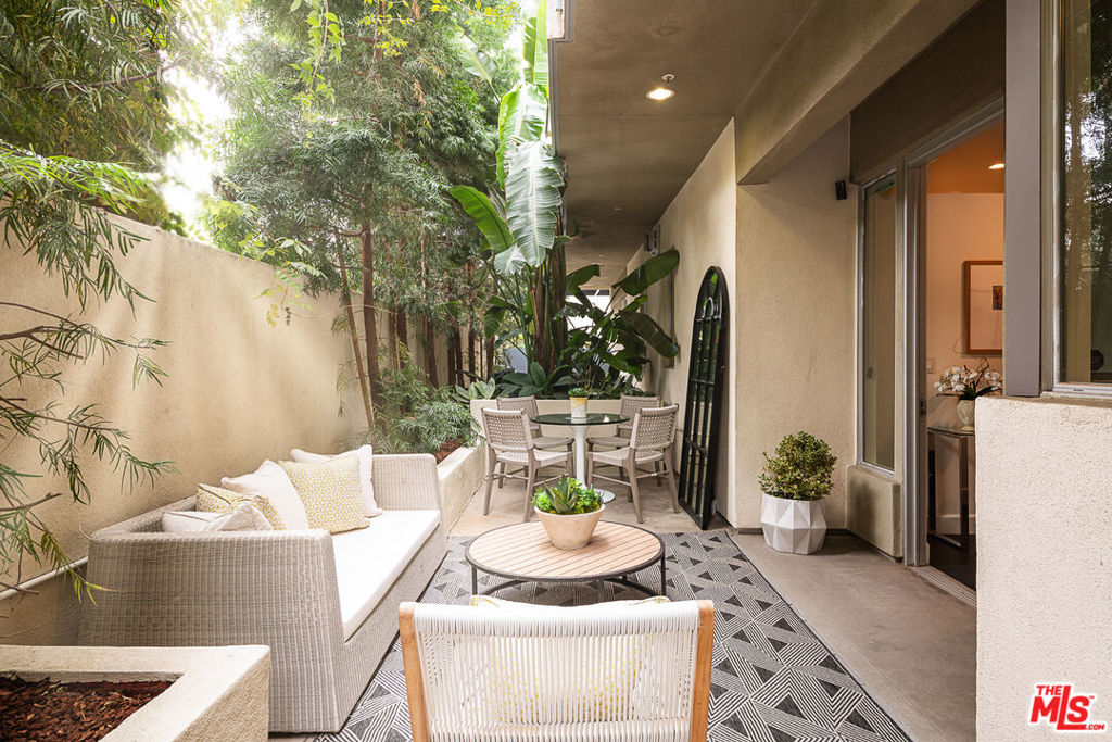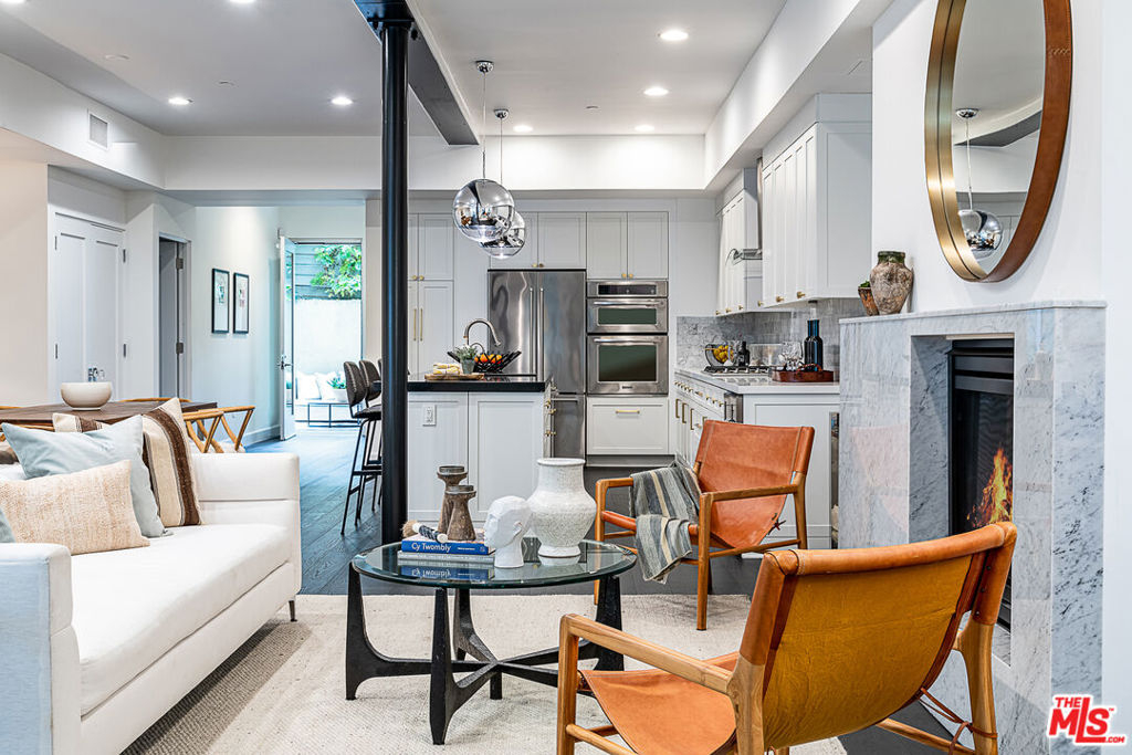 Gorgeous, designer done, single-story condo on one of the best blocks in the heart of West Hollywood. Spacious and open concept floor plan with incredible scale, height and proportions. Oversized office space with floor-to-ceiling windows floods with natural light and captures the courtyard beyond. Living room with a Carrara marble fireplace is the ultimate place to relax. The expansive kitchen is the heart of the house and has an oversized island, floor to ceiling cabinetry, Viking / KitchenAid appliances and Tom Dixon lighting. Designated dining area flows perfectly to the large outdoor patio for the ultimate indoor / outdoor living. Primary suite with fantastic primary bath includes an oversized shower, huge vanity, Robern medicine cabinets and Ellie Cashman wallpaper. Wide plank hardwood floors. Two deeded parking spaces and separate storage unit. Hunter Douglas window treatments. Fantastic walkability score makes this the perfect home in one of Los Angeles most desirable neighborhoods.