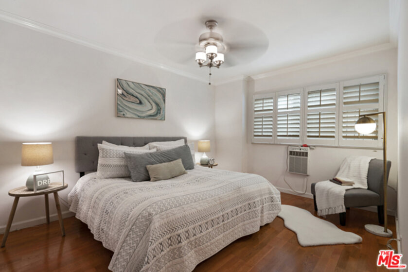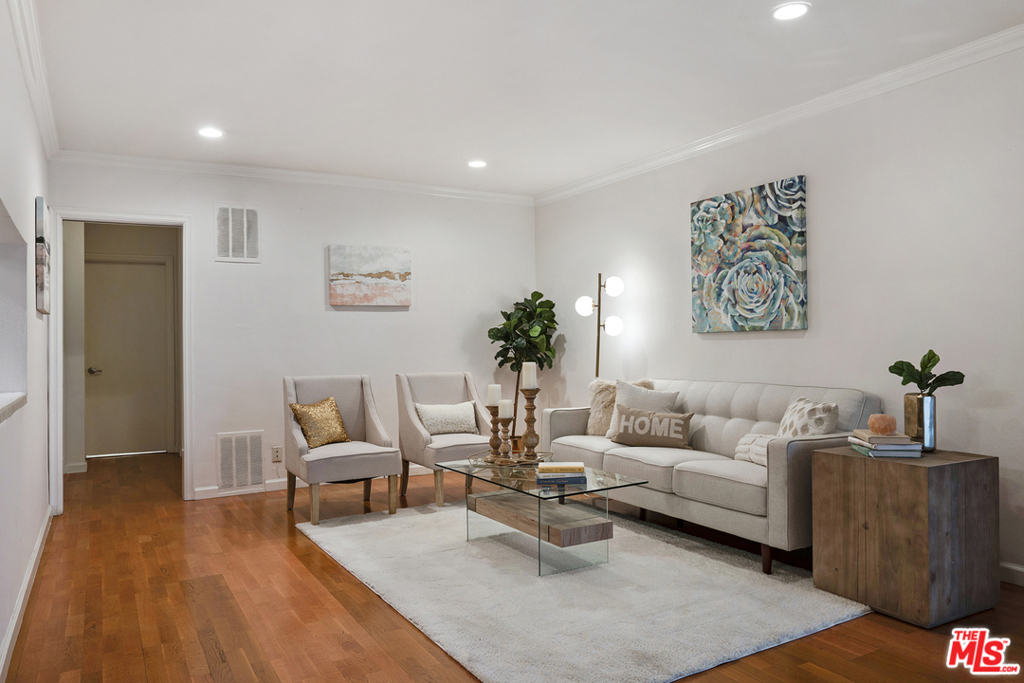 This 1-bedroom condominium is located on one of the best streets in West Hollywood, just below Sunset Boulevard. Smaller complex with only 20 units, pool and gated parking. Features are: Open floor plan, hardwood floors, dining area with built-in shelves, smooth ceilings, crown molding, dishwasher, and an ample sized master bedroom with great closet space. Additional features are: custom window shutters, gated entry, covered outdoor patio and community laundry. Phenomenal Location close to the great restaurants, coffee shops, gym, Whole Foods, hiking and the very best of West Hollywood & the Sunset Strip!