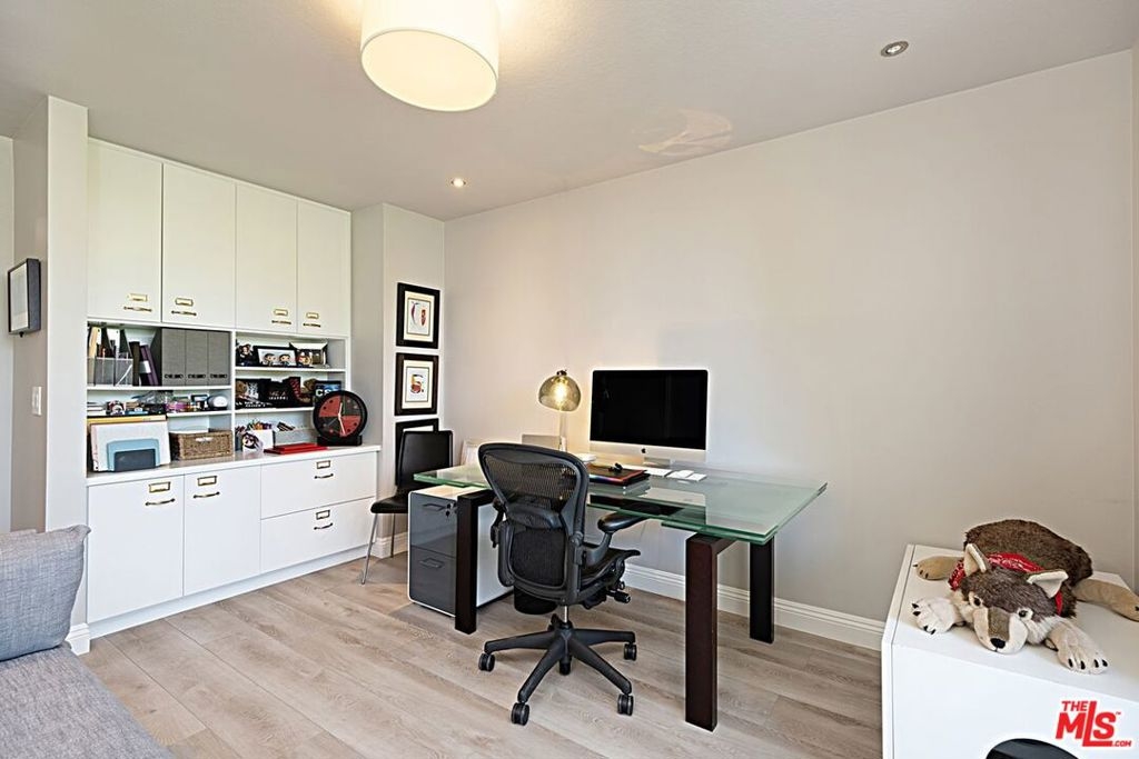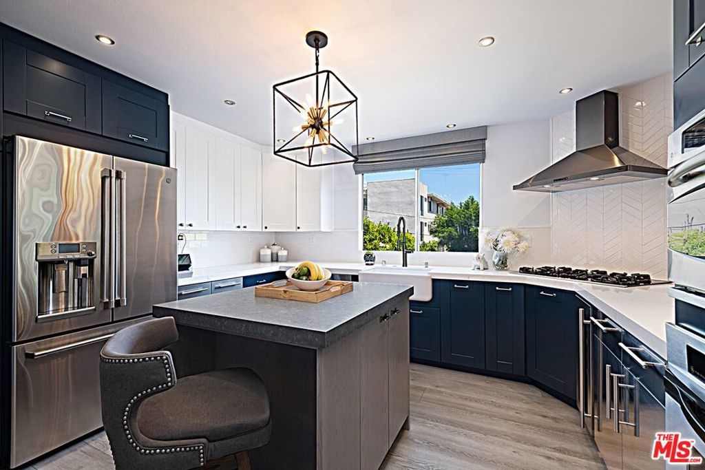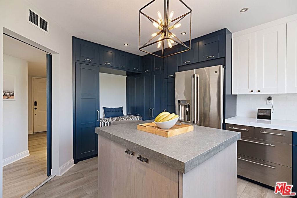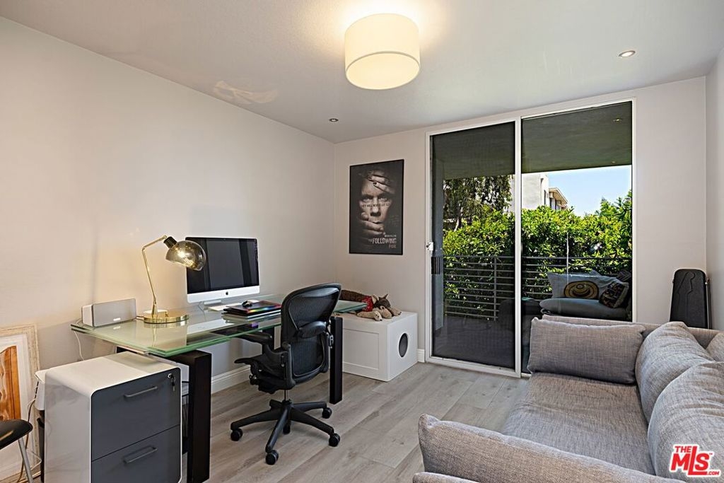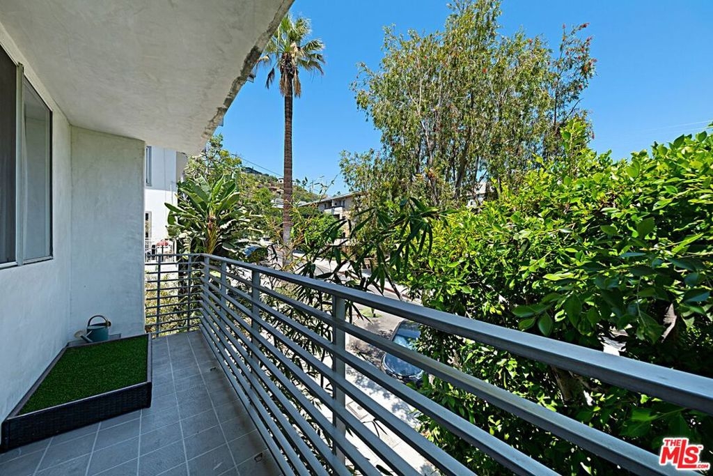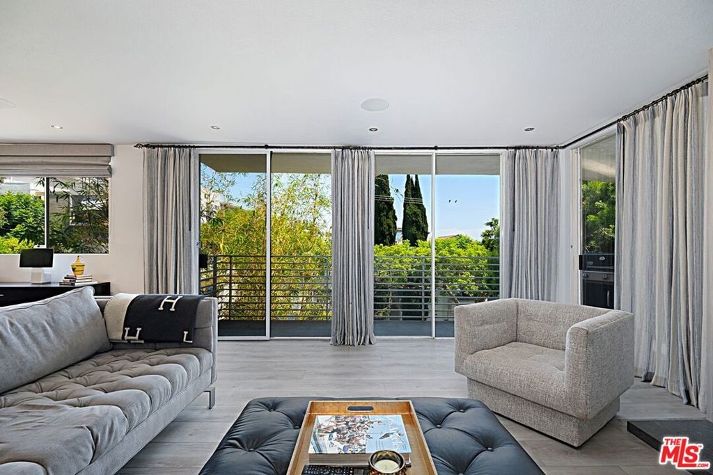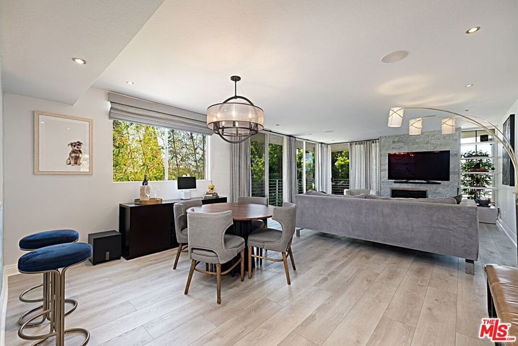 Beautifully remodeled 2 bedroom + 2 full bath in prime location just North of Sunset. Fabulous kitchen features center island with breakfast bar & storage, soft close cabinetry, enlarged pass through for easy entertaining, and newer appliances including wine fridge. Open dining/living room with fireplace and walls of glass that open onto wrap-around patio with tree top and City views. Primary en-suite bedroom with custom walk-in closet, fireplace and a second patio area. For the work-at-home professional, second bedroom converted to an office with custom built-ins, space for a sleeper sofa and patio adjacent. Lux Vinyl flooring, custom wallpaper, window treatments and bespoke finishes. Control 4 System, NEST Smart Home, and Bose surround sound in living room. Convenient Inside stacked laundry and gated SxS parking. Easy access to trendy restaurants, clubs, and shops that Sunset Blvd and WEHO have to offer.