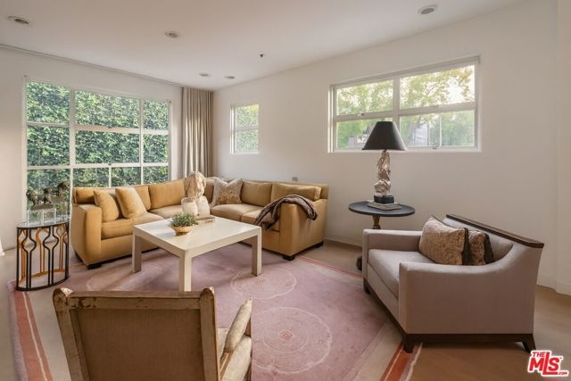 The Lofts at Melrose Place. Just moments from everything West Hollywood and LA has to offer, Melrose Place, shopping at its best, Restaurants, Coffee Shops and the Farmer's Market. As one of West Hollywood's most sought-after buildings this designer-owned loft delivers an irresistible blend of privacy, sophistication and emotional appeal. Soaring 11.5-foot ceilings and an open yet intimate layout create a dramatic and livable space, ideal for both entertaining and everyday comfort. This is arguably the most desirable unit in the building and it's on the market for the first time since the original owner purchased it. The professionally designed space has been published and thoughtfully elevated with custom cabinetry, hand-selected tilework and refined travertine finishes in the primary bath. Newly refinished white oak floors bring warmth and understated elegance throughout, while a gracious floor plan enhances both flow and functionality. Two en-suite bedrooms, one currently styled as a chic home office, anchor the layout and a reimagined service area offers a generous pantry, bar and separate laundry room. Additional highlights include a private terrace overlooking the beautifully landscaped garden where you can enjoy quiet private time, a cocktail or an intimate dinner. And, there is an abundance of private storage in the garage and two easily accessible side-by-side parking spots, RARE conveniences in this location. With private entry access for ease and discretion, this loft is sexy, refined and effortlessly livable. Elevated city living at its most captivating.