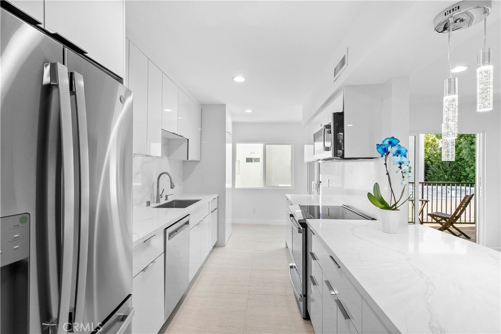 Stunning fully remodeled West Hollywood residence featuring high-end finishes and thoughtful design throughout. This turnkey home offers a sleek modern kitchen, open-concept living and dining areas, and a spacious layout filled with abundant natural light. The entire renovation was completed with permits, including a permitted in-unit washer and dryer, providing both convenience and peace of mind. Located in a well-maintained complex with a sparkling pool, this beautifully renovated home features two generously sized bedrooms, including a spacious primary suite with a walk-in closet and a fully remodeled en-suite bathroom. Both bathrooms have been extensively upgraded with modern fixtures, designer finishes, and elegant details. The bright living and dining area flows seamlessly onto a large private balcony, perfect for morning coffee or relaxing evenings. Additional highlights include two assigned parking spaces and a spacious private storage unit, adding exceptional value and functionality. With stylish finishes throughout, a light-filled interior, and a prime West Hollywood location, this exceptional home offers comfort, sophistication, and effortless living. Please see below the link for virtual tour!