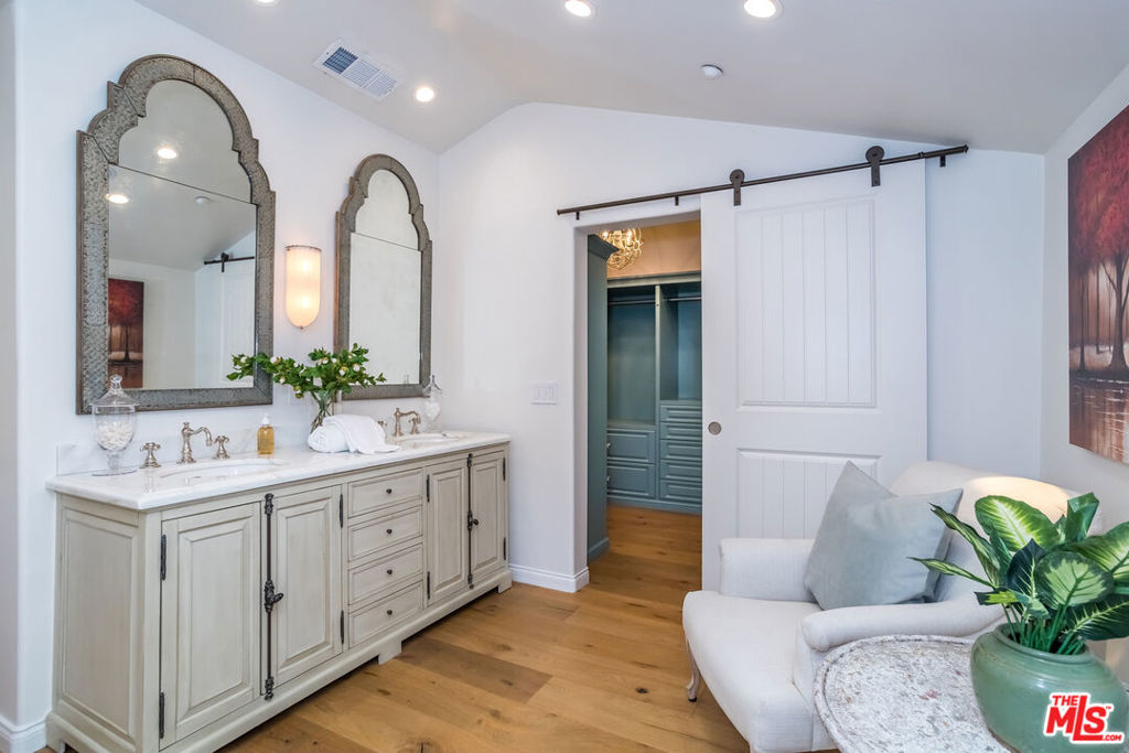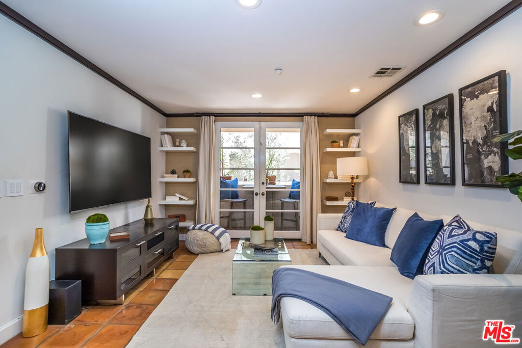 Inside one of the most sought-after condo developments in WeHo awaits this rare offering of the absolutely exquisite Penthouse. Accented by elegant Montecito-style designer finishes, this sophisticated townhouse is light, bright, and ultra-spacious, with privacy to match. This 2-story Penthouse boasts 2 bedrooms, 3 baths, and a formal living room with high vaulted ceilings that fill the space with natural light - all this giving this property a single-family feel. The open den off the cook's kitchen provides the perfect flow for entertaining and the second en-suite bedroom on the main level is ideal for overnight visitors. The stunning primary suite features solid white oak flooring, walk-in closet, and a resort-style bathroom with Carrara marble shower, double vanity sinks, and a spa-like bathtub. From the primary suite, French doors open to a large private rooftop patio with South facing views. Side-by-side parking and dedicated storage room at the garage level, with only 12 homes in the development. Villa Cynthia is a classic Old Hollywood-style building with a fountain courtyard and pristine landscaping - a truly spectacular find in one of LA's most desirable neighborhoods.