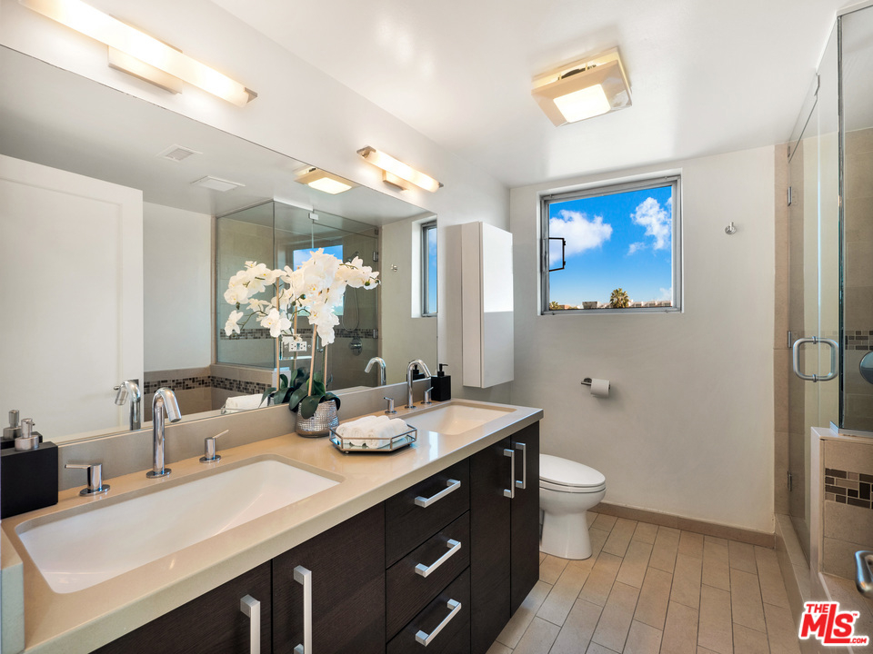 Don't miss this one of a kind stunning Architectural Multi-level End Unit Townhouse! This light, bright, double corner unit faces East, South, and West with panoramic views from the Hollywood Hills through DTLA and past Century City. The entry level floor boasts bamboo floors, 20ft walls of glass, kitchen with quartz counters & Bosch stainless steel appliances, and a private patio decorated with beautiful trees. Follow the stairs to the open loft level perfect for any office or sitting area. The 3rd and 4th levels are both enormous private bedroom suites each with their own balcony and closets. The designated master features a fireplace set between walls of glass showcasing the city views. Above the 4th floor Master is the fantastic private roof deck with sweeping views, built in seating, and a utility kitchen for meal prep while hosting on the deck. Additional features include a 2-car attached private garage with laundry and ample storage. This is a must to see!