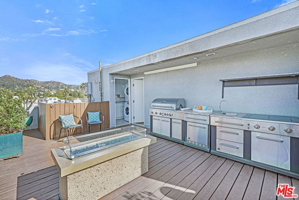 ***PRICE TO SELL! REDUCED $95K*** Enter this Stunning Architectural Townhome with Dynamic Space & Volume. Soaring 16 Ceilings and Walls of Glass. The Largest of the 5 Townhomes, 3 bedrooms, 3.5 baths, Plus Loft /Office, is quietly located at the back of the complex. The Multi Level Open Floor Plan Features Bamboo Floors, Porcelain Tile, Theater Surround Sound, Wood/Gas Fireplace, Custom Italian Cabinetry, all open to Caesarstone Kitchen Counters, Stainless Steel Appliances, 2 Ice Makers & Wine Refrigerator. Loft/Office with Marble Countertops, Spacious Un Suite Bedrooms and Baths. Master w/Wood/Gas Fireplace. 2 Indoor Laundry areas & Private 2 Car Side by Side Subterranean Garage & Storage. 3 Outside Areas including Front Patio, Multiple Balconies, and HUGE Private Rooftop Deck, with Kitchen, Dishwasher, Fire Pit, plus 300-degree Views of Downtown, Century City, Catalina & The Hollywood Hills. A Must See!
