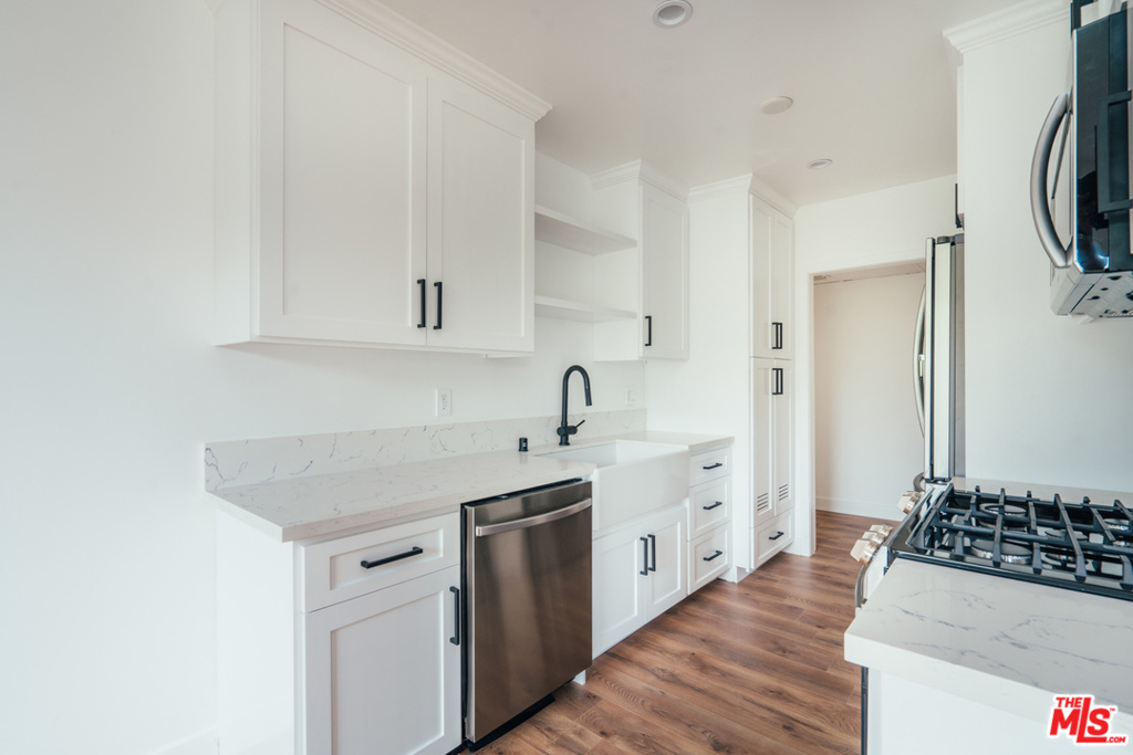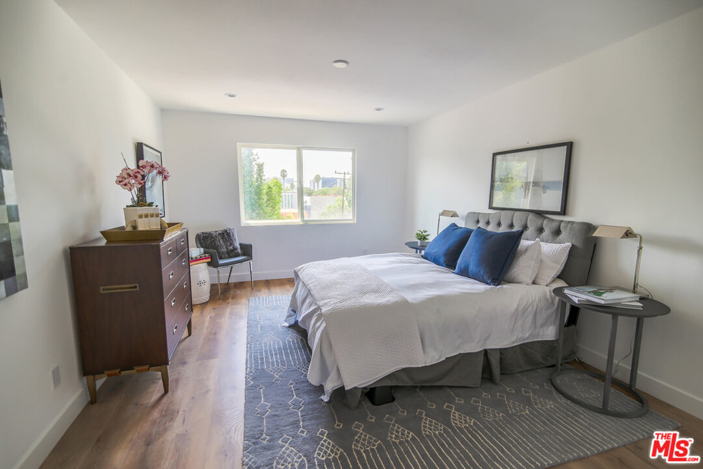 Sophisticated and stylish penthouse level unit in prime West Hollywood. Fully renovated and upgraded, you'll fall in love with the fantastic light and livability of this unit. The large, open concept living area is located off the kitchen & dining area with access to a private patio boasting views to PDC & the Hollywood Hills. Custom wood cabinets are featured in the kitchen with new stainless appliances and a smart all in one washer/dryer. The spacious master bedroom comes complete with a walk-in closet, an additional wall of closets, & a completely renovated bathroom. The spacious guest room is sure to please with views to the Beverly Center & a stunning hall bathroom. The unit also comes with two designated parking spaces with the potential of a third space for guests when entertaining. All this within strolling distance to Trader Joe's, some of the best shops & restaurants West Hollywood has to offer, & more!