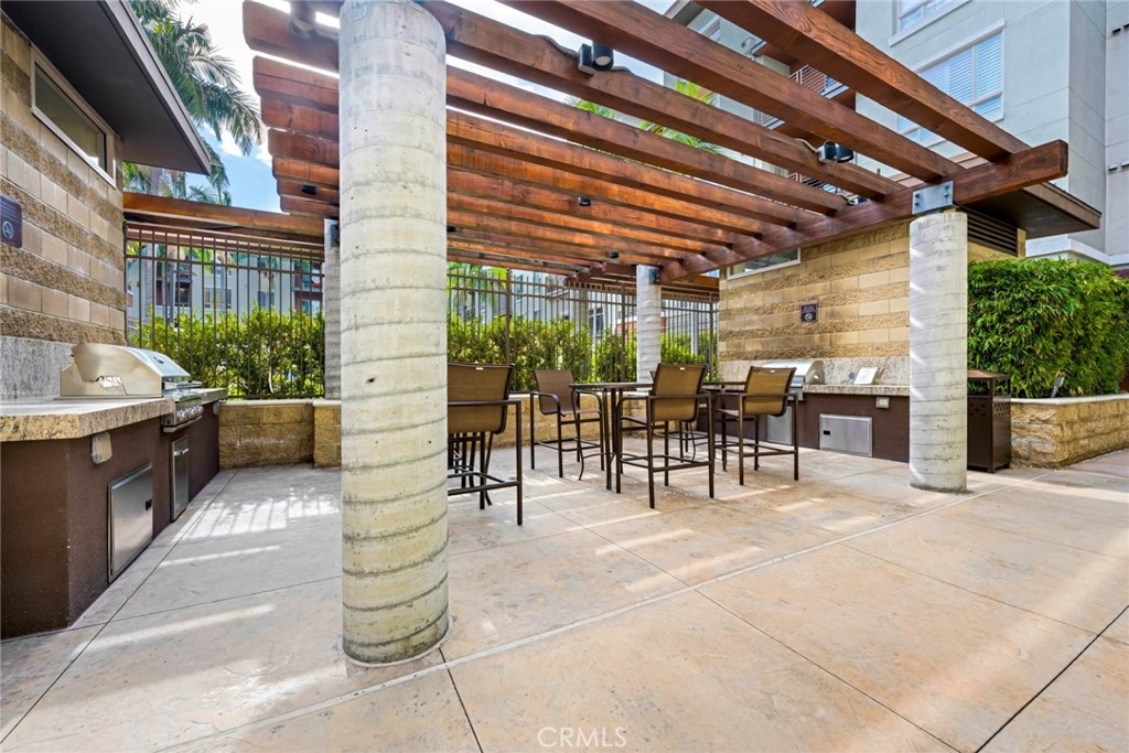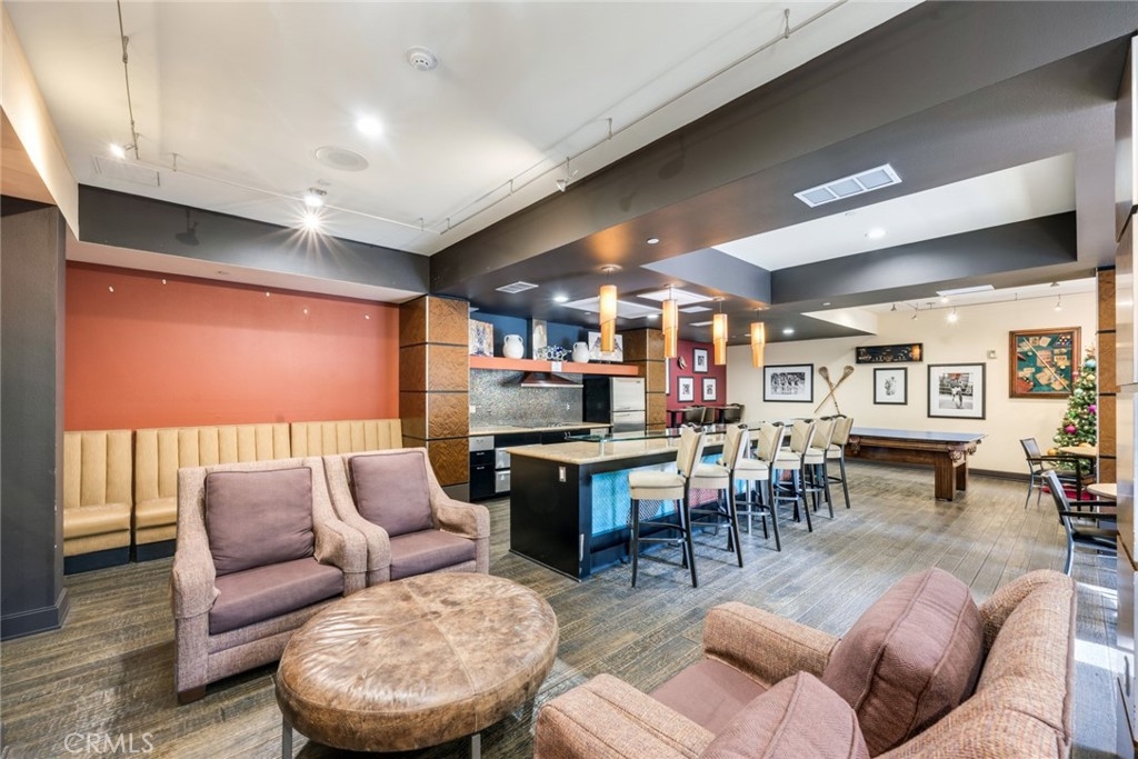 Spectacular light filled 1bed + 1bath, with private balcony w/ storage closet, and in a quiet rear location. Spacious living room with dining area + breakfast bar. Well appointed kitchen with stainless appliances; refrigerator, stove/range + microwave. Bedroom includes double paned windows & large walk-in closet + additional hallway storage. Oversized bathroom + separate closet with side by side laundry. Seller has put in new flooring and carpet in the unit. This resort-like complex boasts a sparkling pool in a sunny courtyard setting with a spa and BBQ area for entertaining. Enjoy stunning downtown views from the secluded roof deck. 24/7 security, conference room, clubhouse for private events, screening room, and business center. Pristine gated building with one parking spot + guest parking. Head out and take advantage of one of the best downtown locations, The Arts District. This area is known for some of the best restaurants, bars, and coffee shops in LA, such as; Angel City, Bavel, Bestia, Manuela, Cha Cha Cha, Everson Royce Bar, Yunomi Handroll, Zinc Cafe, plus so many more!