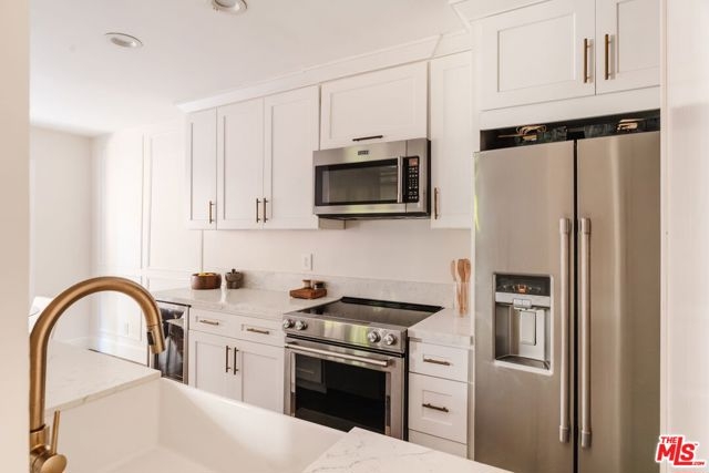 A unique offering in prime West Hollywood. This fully renovated, split floor plan unit boasts a private patio that runs the entire span of the unit which gains nearly 600 sq. ft. of additional living space to enjoy that indoor/outdoor California lifestyle. The expansive living room is perfect for entertaining and the open floor plan is an entertainer's dream. The kitchen showcases ample cabinet space, a beautiful waterfall edged counter, and stainless appliances. The bedrooms are located on either side of the main living space for maximum privacy. Each room also has its own bathroom which have also been updated with alluring tile showers. You'll love the new French doors from each bedroom, dining room, and living room that open to the private patio. When you're ready to venture out on the town, you'll find everything West Hollywood has to offer nearby with some of the city's top dining & shopping just moments away.