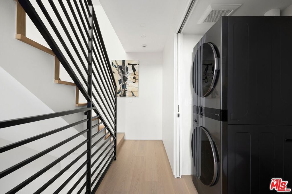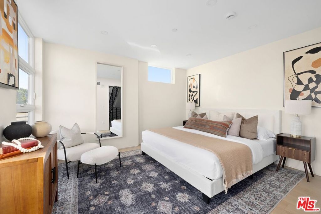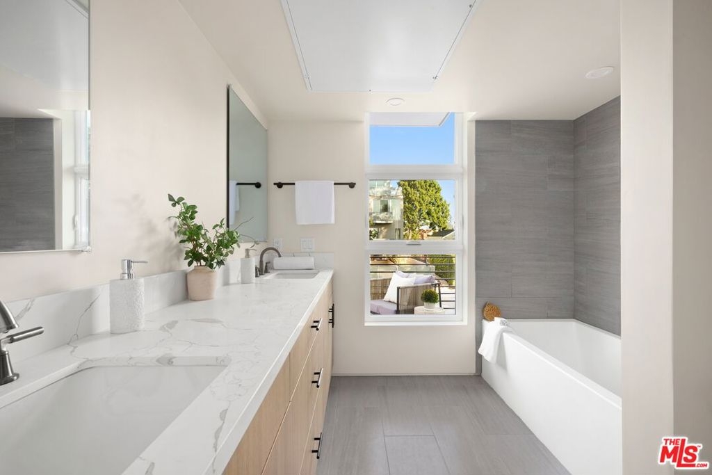 Presenting this 2025-built, front-facing townhome with a large private rooftop, expertly crafted with utmost quality and appointed with fine finishes throughout. Large picture windows welcome light into the spacious living room, as wood planks overhead add dimension and style to the space. Smooth polished concrete floors flow into the designer kitchen, complete with quartz countertops, subway tile backsplash, and state-of-the-art appliances including a Viking range with custom hood. Upstairs, the primary bedroom includes an en-suite bathroom with dual-sink vanity and oversized rainwater shower with ledge as well as a walk-in closet with built-ins. Convenient to the bedroom levels are two balconies as well as stackable laundry. From the private, dedicated rooftop, enjoy panoramic views of the Santa Monica Mountains and Hollywood Hills, the iconic Hollywood Sign, treetops, and vast, sweeping cityscape. Under calm California skies, relax and entertain guests, barbecue, and dine al-fresco. Parking is controlled-access and subterranean, and each townhome has solar. Welcome to a fresh lifestyle at The Ten11, a set of five newly completed townhomes located in prime West Hollywood just moments to shopping along Melrose, The Grove, Original Farmers Market, nightlife, restaurants, and more.