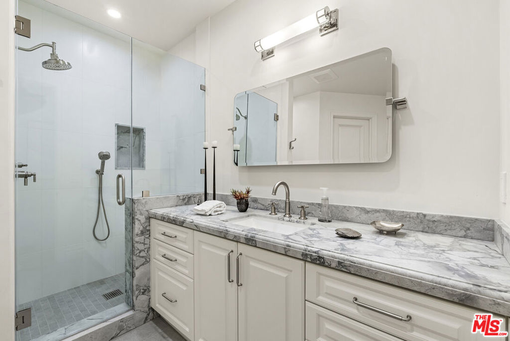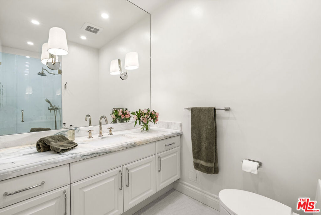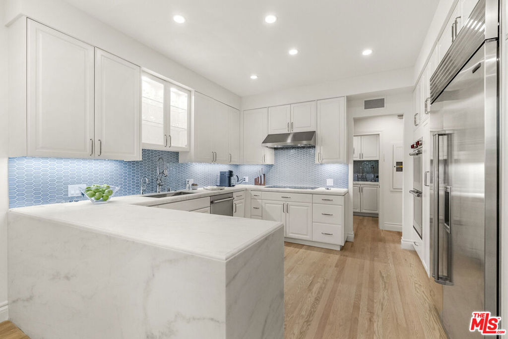Stunning Designer Remodel in Prestigious Le Parc, Century City. Experience refined luxury in this completely reimagined, brand-new contemporary residence located within the coveted guard-gated enclave of Le Parc in Century City. Designed with sophistication and effortless style, this two-bedroom plus den residence offers an expansive, open floor plan and seamless indoor-outdoor living. From the welcoming formal foyer, enter into a grand living and dining area with soaring 10-foot ceilings, dramatic double doorways, and walls of French doors opening to lush, brick-laid patios surrounded by serene landscaping and tranquil water features. The gourmet chef's kitchen is appointed with state-of-the-art appliances, custom cabinetry, and exquisite marble countertops, complemented by a sunlit breakfast room that opens to a large private terrace, ideal for morning coffee or al fresco dining. The luxurious primary suite is a private retreat with dual spa-like baths featuring bespoke stonework, and two separate, custom-designed walk-in closets. A chic hotel-style guest bedroom includes its own elegant en-suite bath, while a beautifully styled powder room is adorned with a marble vanity. Additional features include new HVAC units, upgraded windows, premium plumbing fixtures, designer lighting, brand new custom crafted oak flooring, and generous storage throughout. Enjoy the comfort and privacy of a single-family home with the full-service lifestyle of Le Parc offering 24-hour guard-gated security, lush gardens, multiple pools and spas, tennis courts, a fitness center, and a residents-only clubhouse. All moments away from Westfield Century City, Beverly Hills, and the best of the Westside.