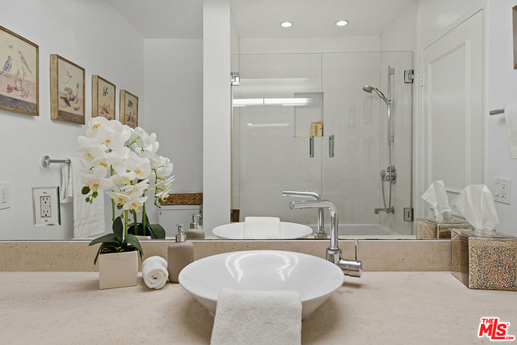 Welcome to an exceptional West Hollywood residence that combines thoughtful design with everyday comfort in one of LA's most desirable neighborhoods. This spacious 2-bed, 2-bath condo with a dedicated office delivers a flexible and functional layout ideal for modern living. Upon entry, you'll find an expansive living area that flows seamlessly into a well-appointed kitchen featuring quality appliances, ample counter space, and custom cabinetry, perfect for cooking and entertaining. Just off the living space, the separate office/study offers a productive work-at-home setting or quiet zone for hobbies and organization. The primary suite is a private retreat with a walk-in closet and an en-suite bathroom finished with contemporary fixtures and finishes. The second bedroom is comfortable and versatile, accompanied by a beautifully styled guest bathroom. An in-unit laundry makes everyday living easier. Residents enjoy the convenience of tandem parking and access to excellent building amenities, including a pool and well-maintained common areas. Situated in the coveted mid-century 1015 N Kings Road building, this condo places you across the street from Kings Road Park, popular restaurants, Gelson's Market, Barry's Bootcamp, and West Hollywood's vibrant nightlife. This home offers a rare combination of space, quality, and location a must-see opportunity in the heart of WeHo.