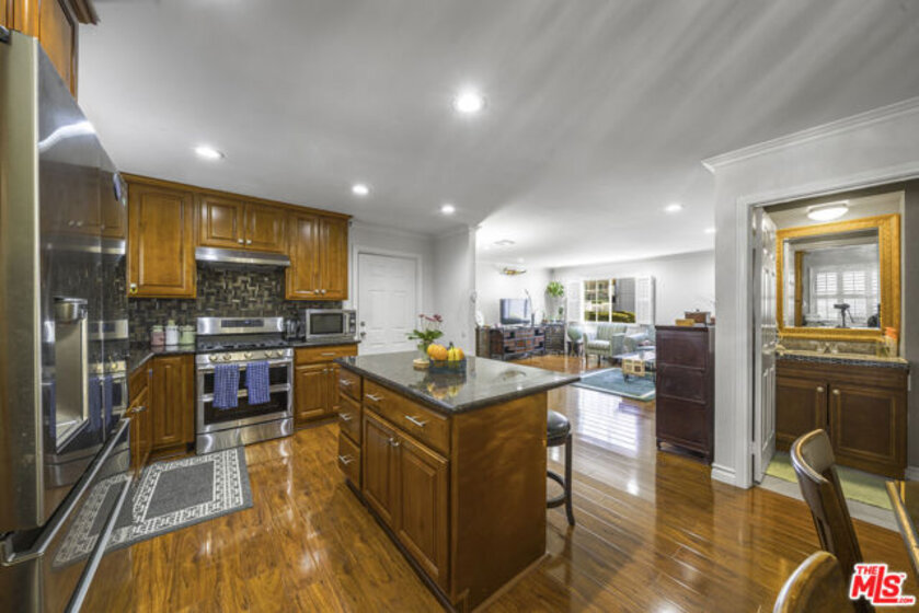 First level units are above street level. This unit has NO side-by-side shared walls downstairs! This stunning 3-bedroom, 3-bathroom home offers a perfect blend of modern convenience and urban charm. Nestled in a vibrant neighborhood, this home has an open floor plan that effortlessly connects the spacious living room to the kitchen and dining area, making it ideal for entertaining or relaxing with family. All three bedrooms are conveniently located upstairs, providing a serene retreat from the entertainment and family area. The in-unit laundry, also upstairs, adds to the ease of everyday living. Large windows throughout fill the space with natural light, highlighting the sleek shutter finishes and contemporary design. The primary bedroom has an ensuite bathroom, generous walk-in closet and large sliding glass doors that open up to a balcony. There are two designated parking spaces in the gated garage and guest parking. This urban oasis feels tucked away from the city's hustle and bustle, yet in the middle of award winning restaurants, markets, museums, parks and entertainment venues. Enjoy the best of city living close to Larchmont Village, Hancock Park, Melrose, Hollywood, Silverlake and so much more!