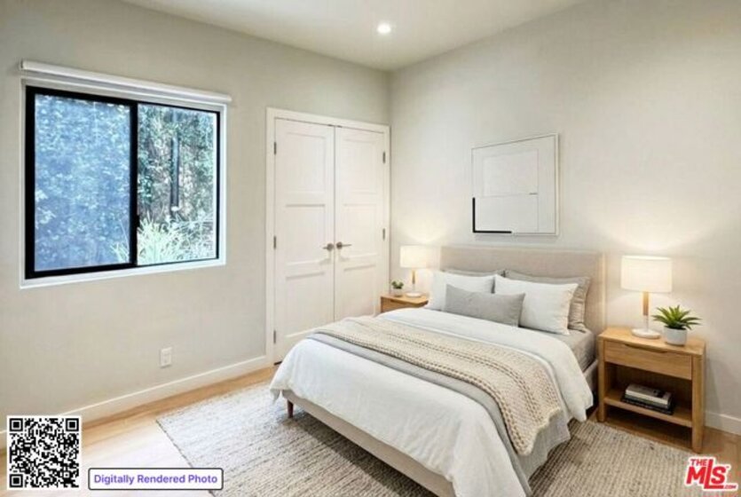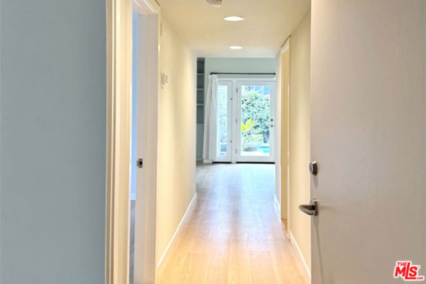 Situated in one of West Hollywood's most desirable locations, this beautifully remodeled two-bedroom, two-bath home maintains a direct connection to the outdoors, facing the sundeck and pool to create a private, tranquil oasis. Interiors are flooded with natural light and anchored by wide-plank white oak flooring and recessed lighting throughout. The generously sized modern kitchen features quartz countertops, a breakfast bar, stainless steel appliances, and an in-unit Bosch washer and dryer. The west-facing living and dining area is defined by floor-to-ceiling windows, a cozy fireplace with custom built-ins, and a private balcony. French doors provide a seamless transition to the adjacent pool area, extending the living space outdoors.The primary suite is a luxurious retreat, featuring a substantial walk-in closet and an en-suite bathroom with an expansive shower and ample storage. The second bedroom has a lovely green view, and cool sliding doors, while the second bathroom is finished with a deep soaking tub and detailed mosaic tiling. The keyed elevator ascends from the garage directly into a private entry foyer dedicated solely to this unit. Complete with two side-by-side parking spaces, the residence is positioned a moment's drive or walk from the neighborhood's fabulous dining, shopping, and vibrant nightlife.